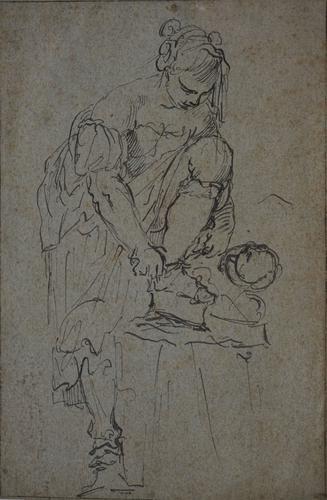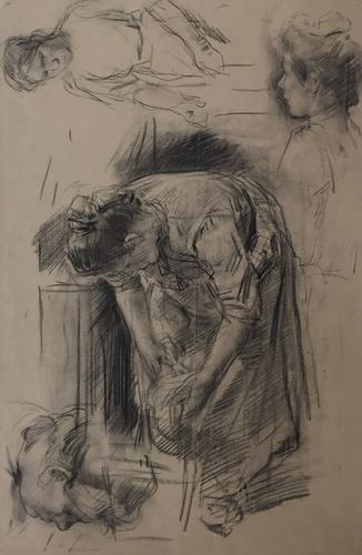 Courtisane haar schoen aantrekkend (recto), studie v...