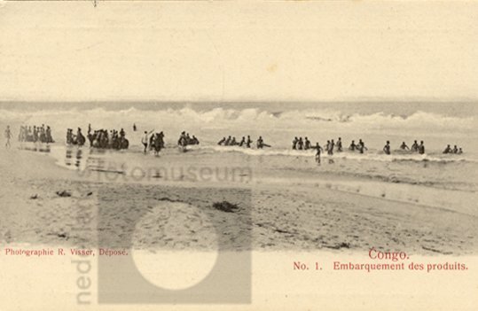 Handelsproducten worden ingescheept op het strand