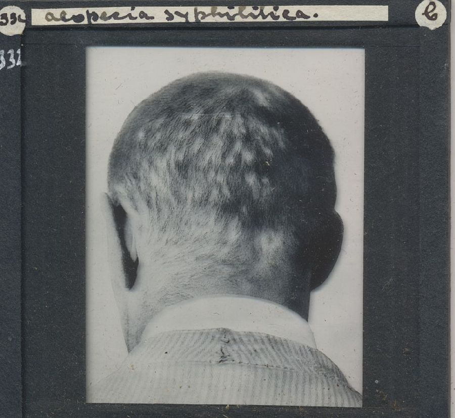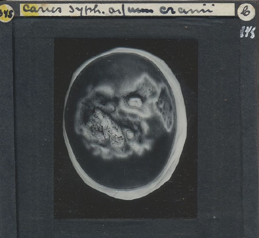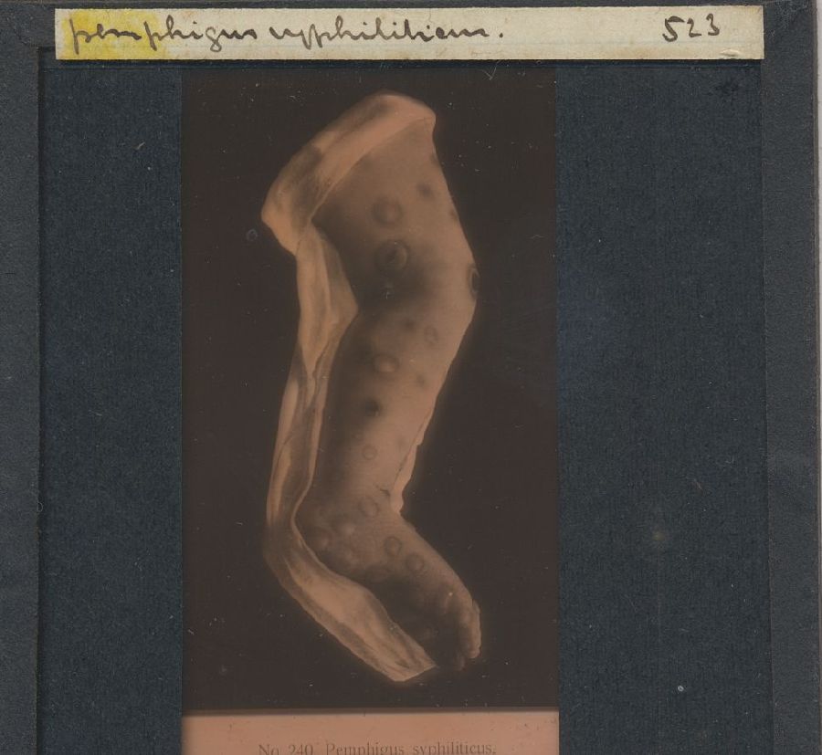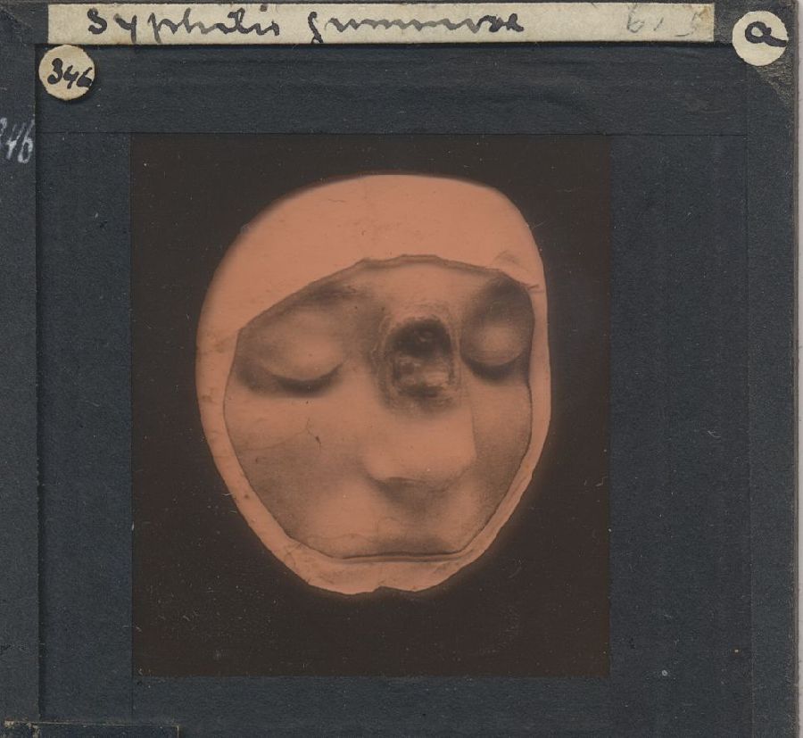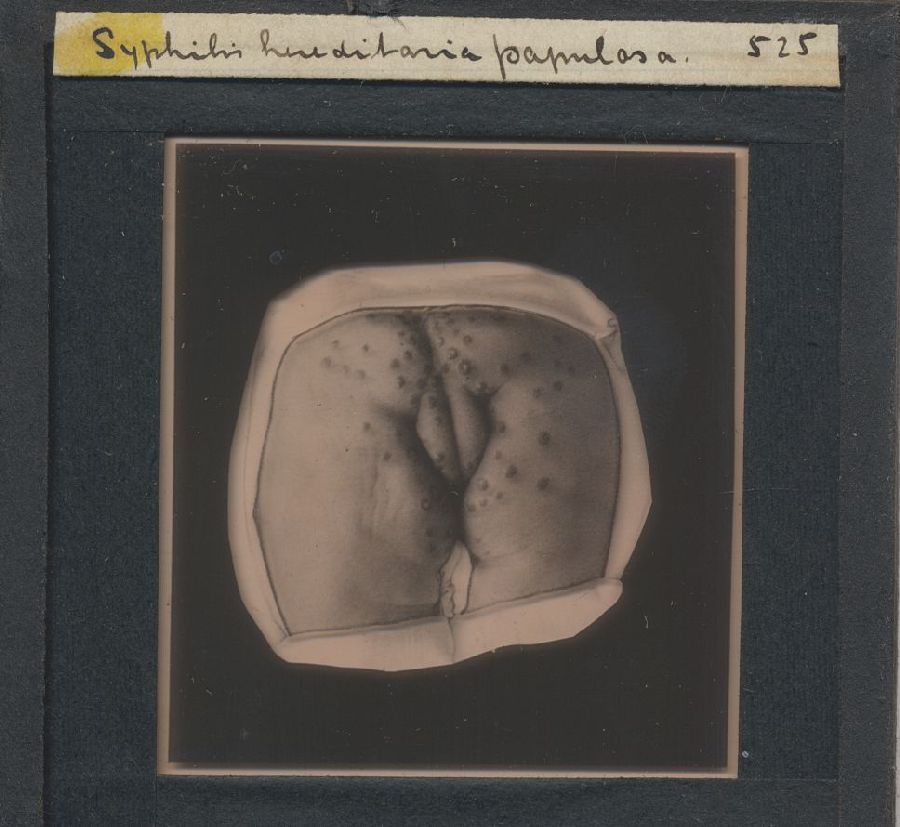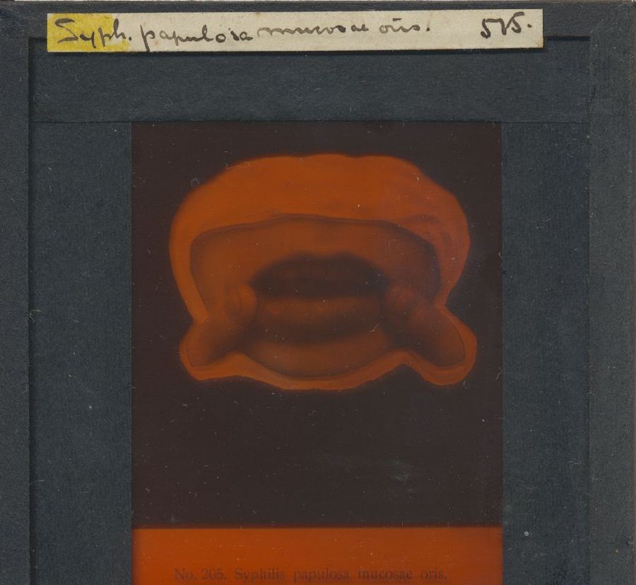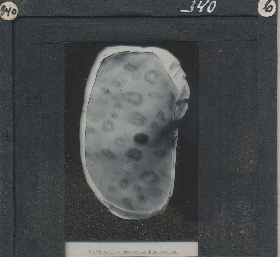 Kistje met 50 glasdia's met ziektebeelden syfilis, t...