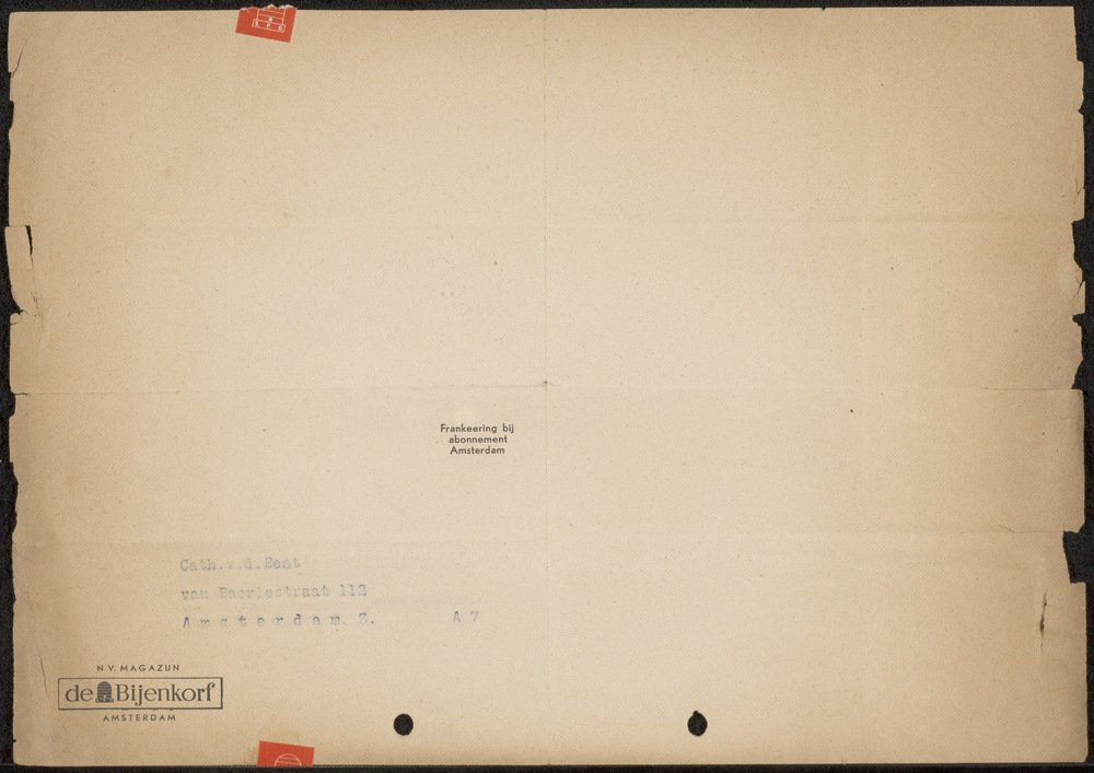 Brief van N.V. Magazijn "de Bijenkorf" Amsterdam