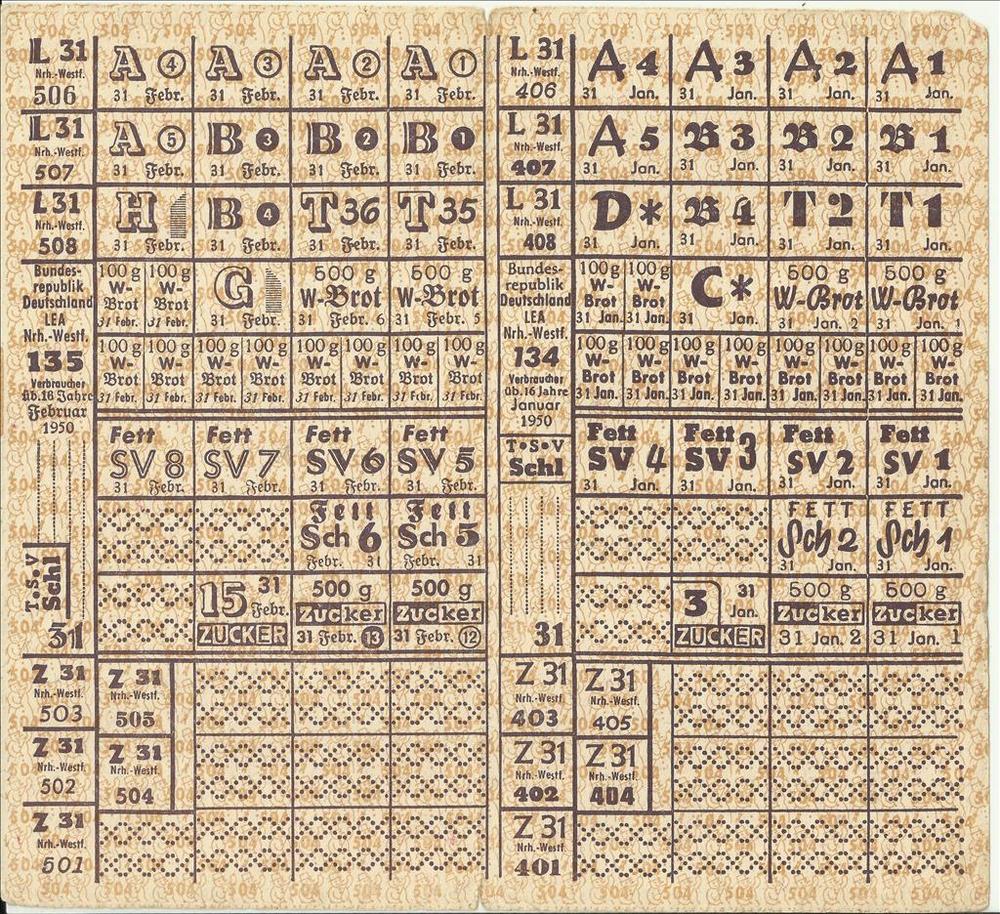 Lebensmittel-Karte 1950