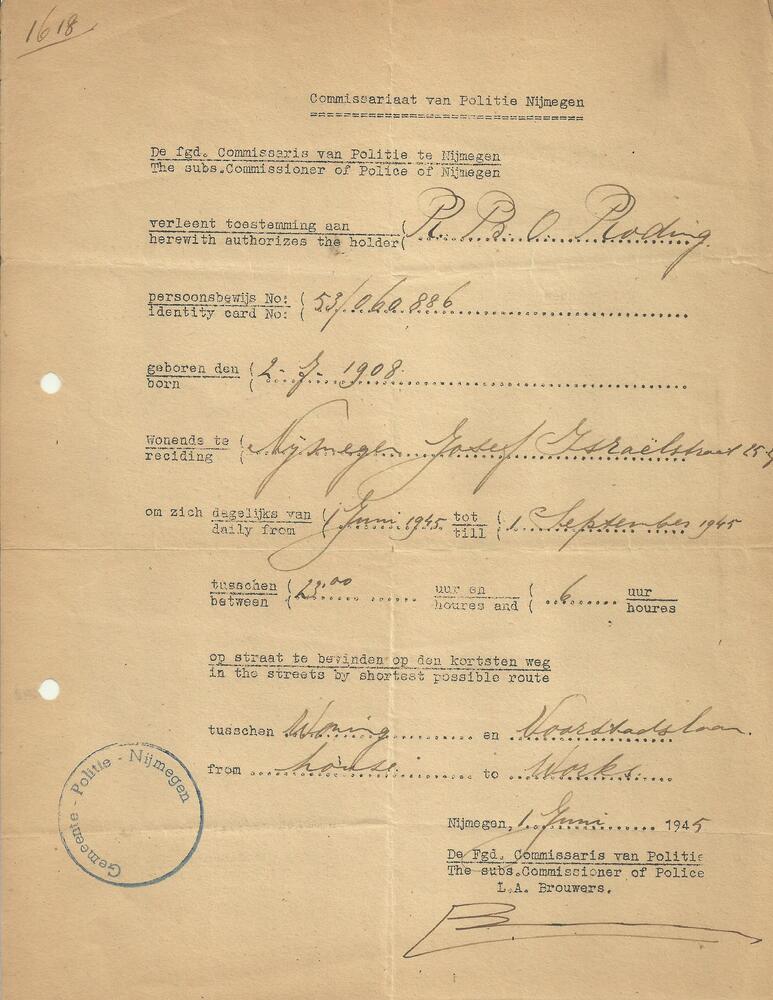 Commissariaat van Politie te Nijmegen 1 juni 1945.