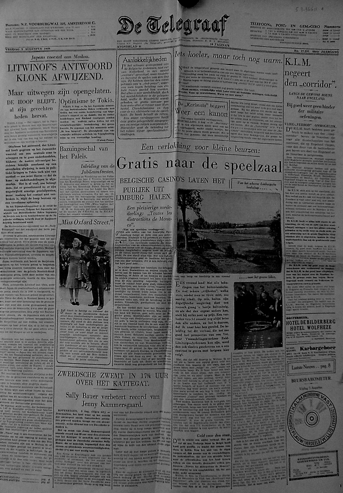"De Telegraaf" van "Vrijdag 5 augustus 1938" "Avondb...