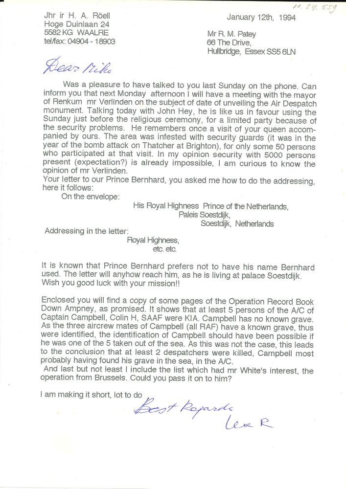 van H.A. Röell aan R.M. Patey