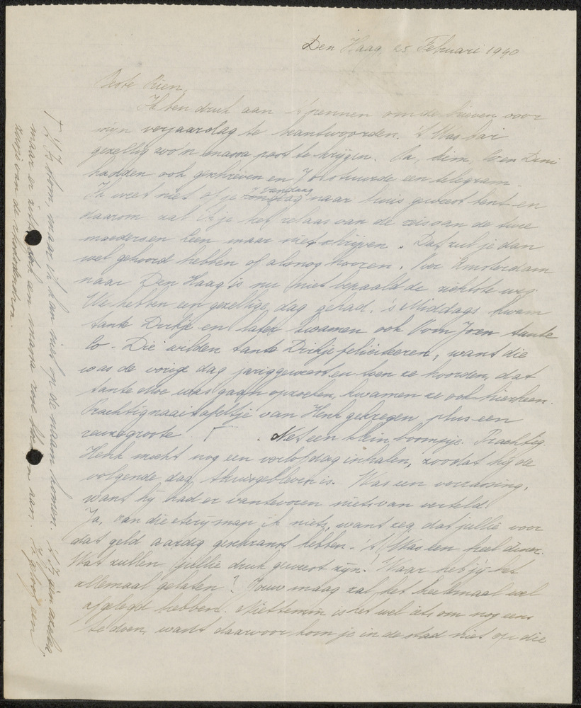 persoonlijke brief 25 februari 1940 van An uit Den Haag