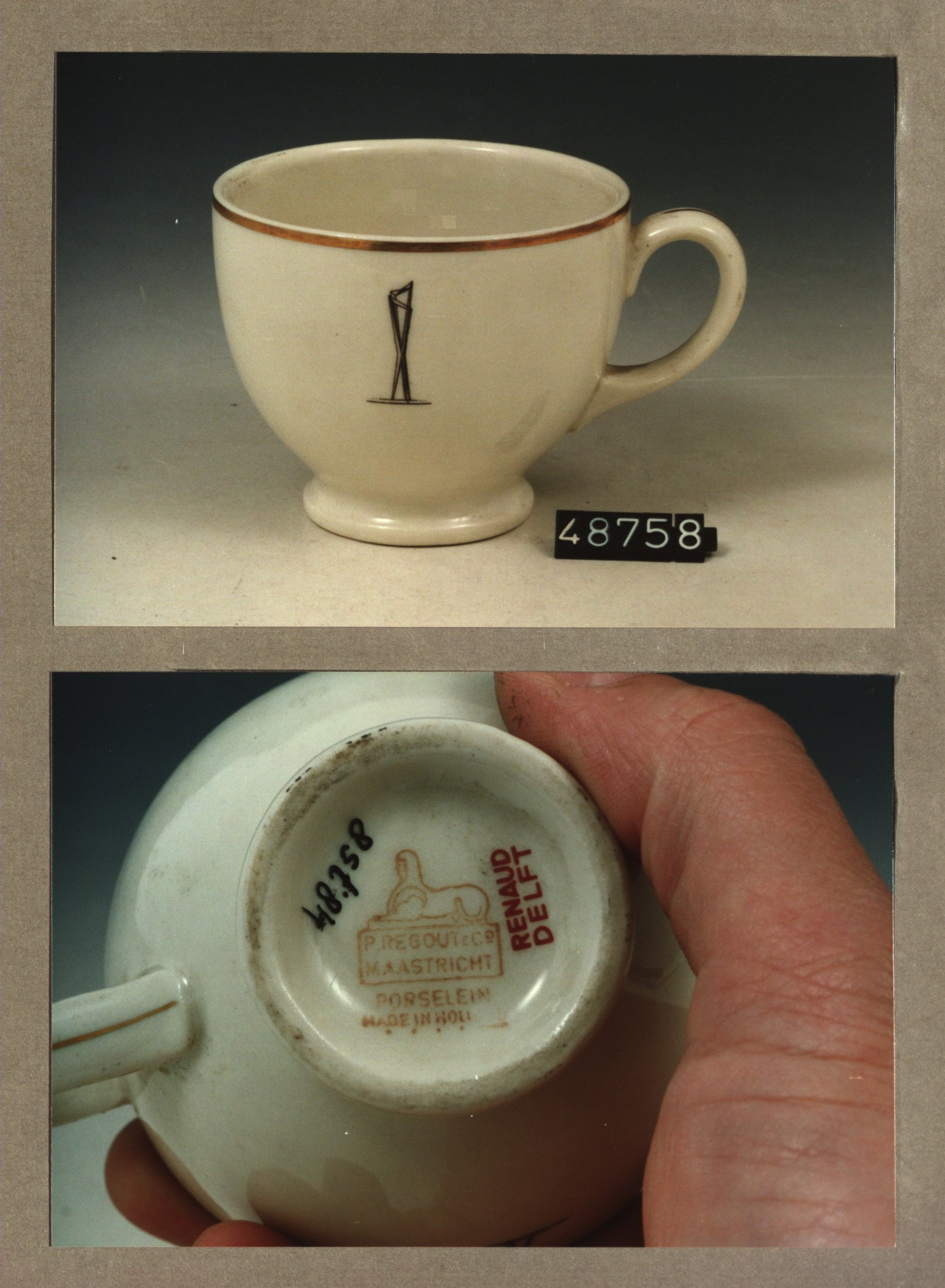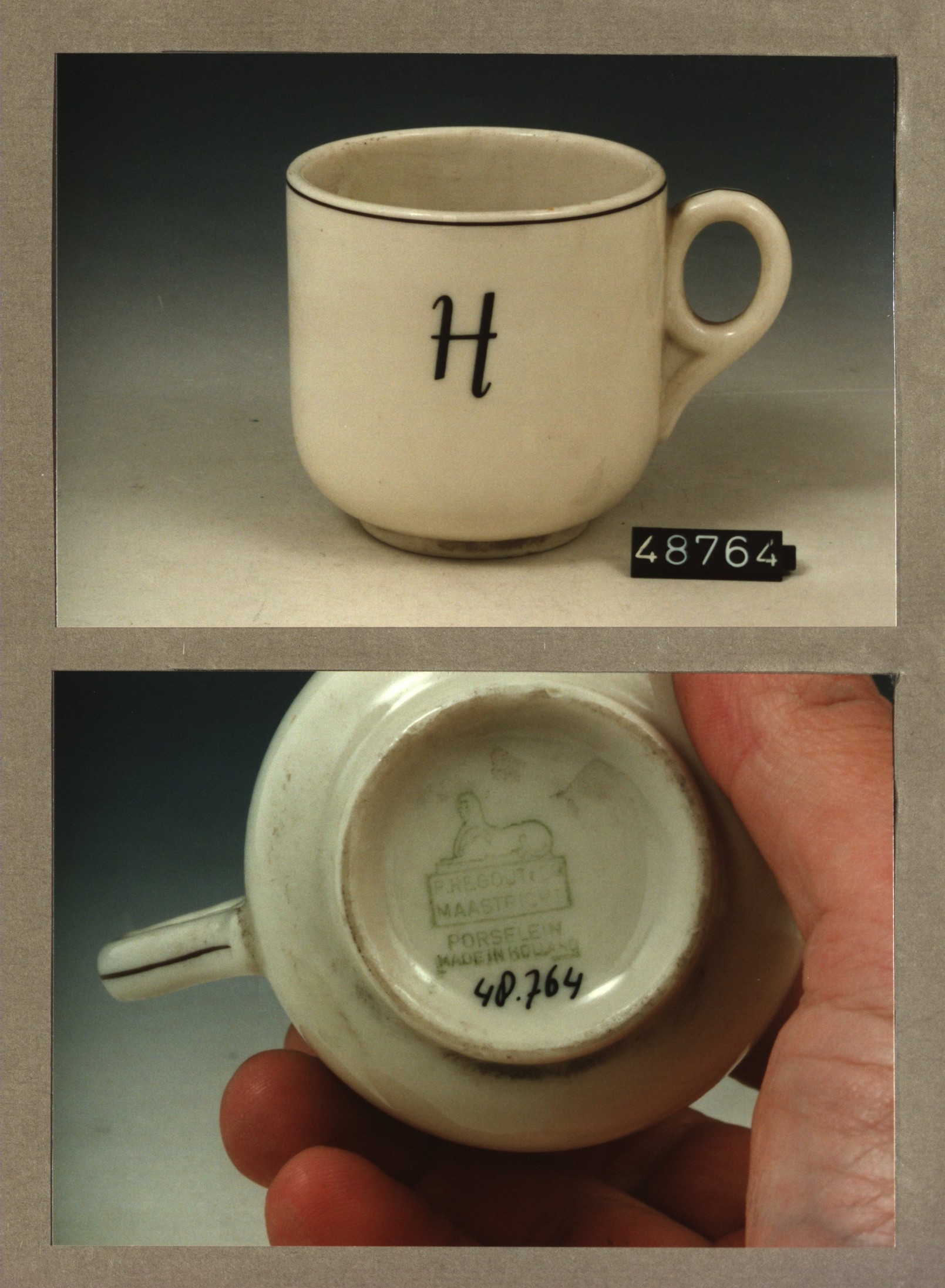 Kop met opschrift, model F met decor H