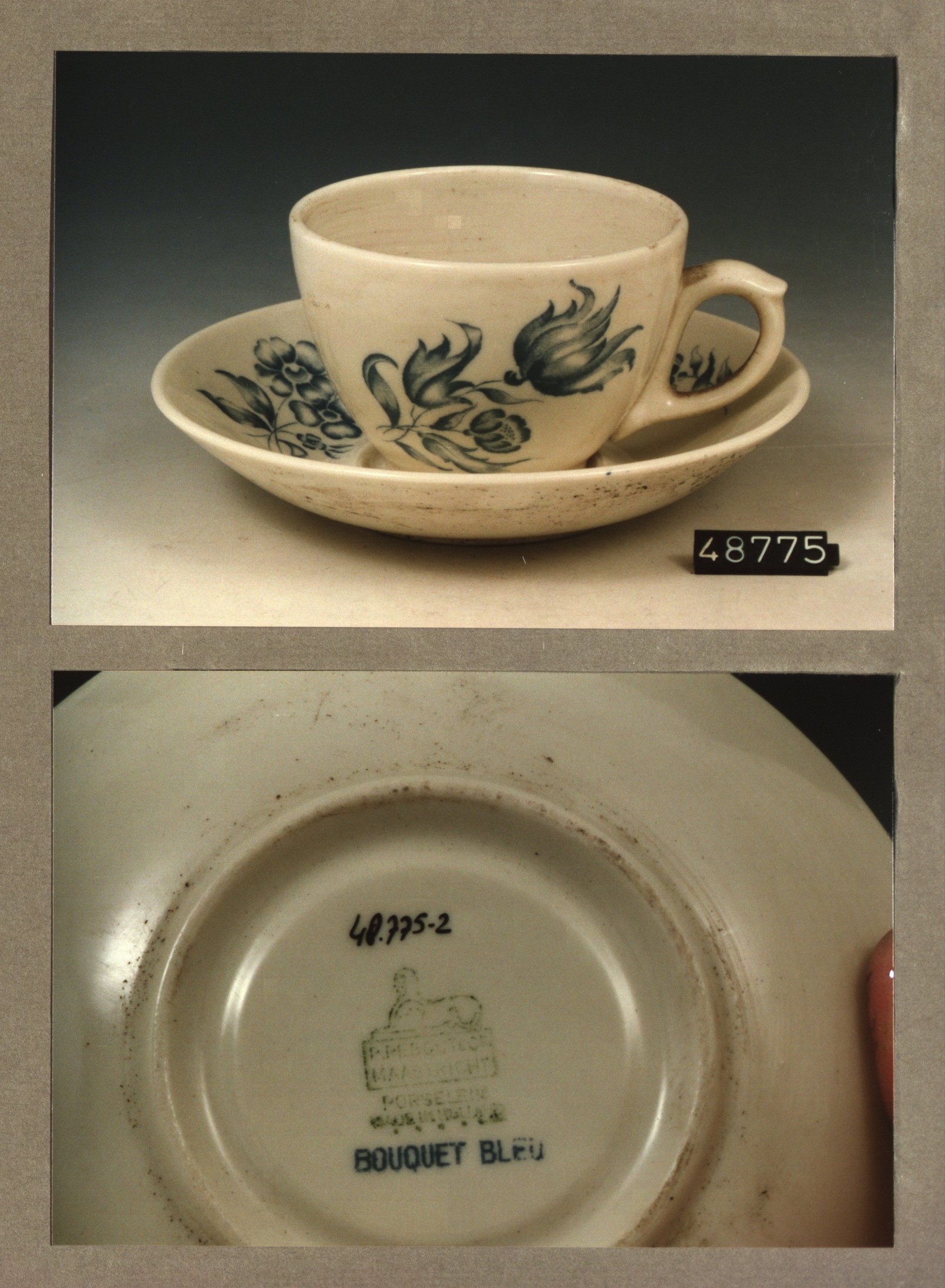 Kop en schotel, model SMN met decor Bouquet bleu