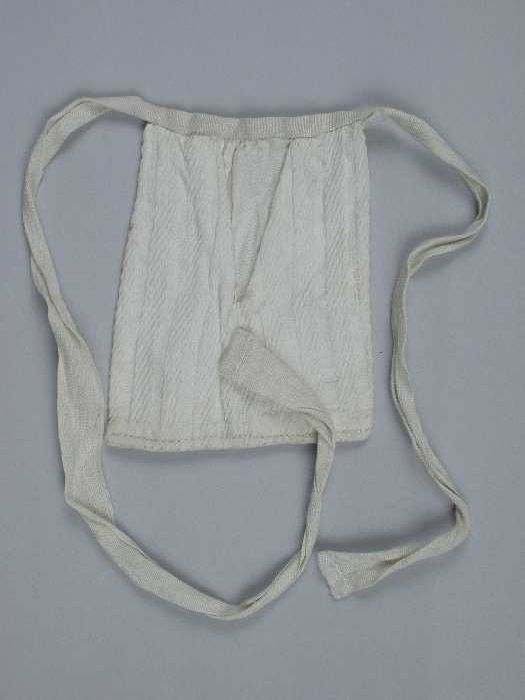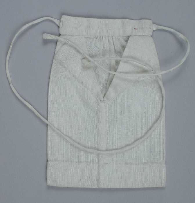 Poppenonderrok van wit keperkatoen, strikbanden aan ...
