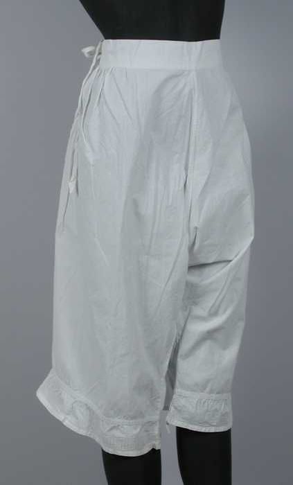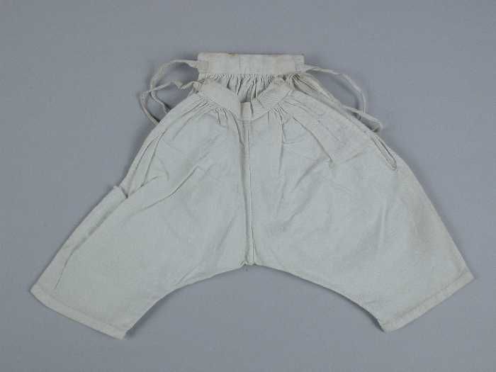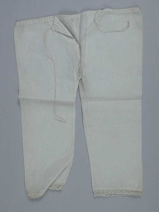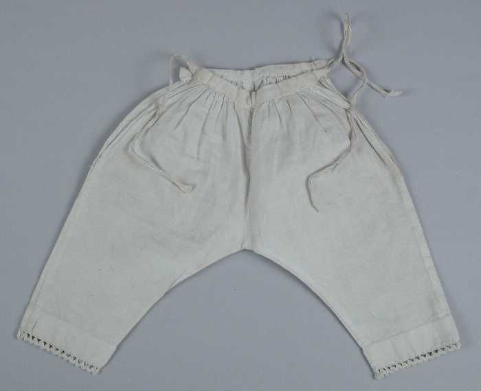 Poppenonderbroek van wit katoen met halflange pijpen...