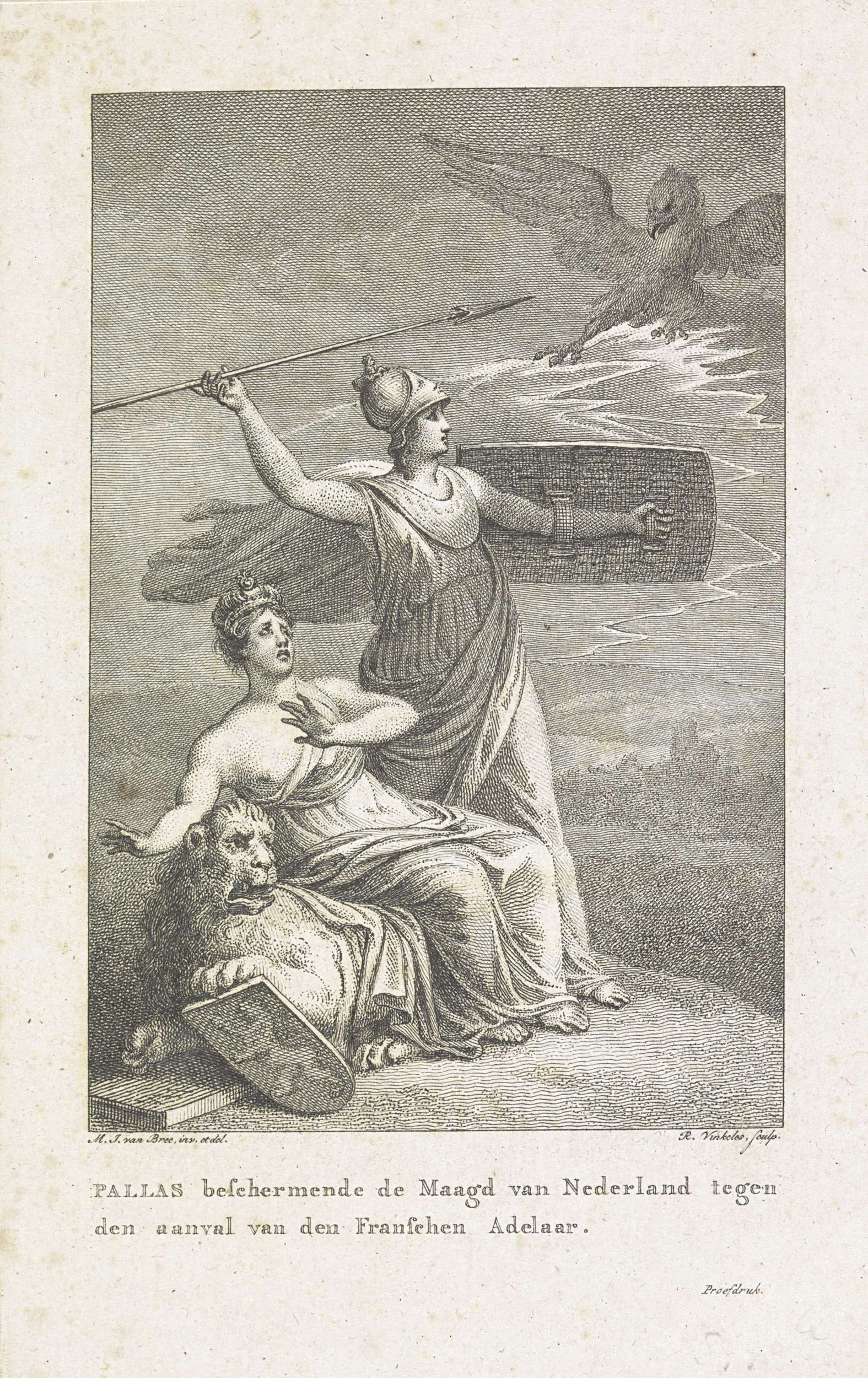 Minerva beschermt de Nederlandse maagd, 1815