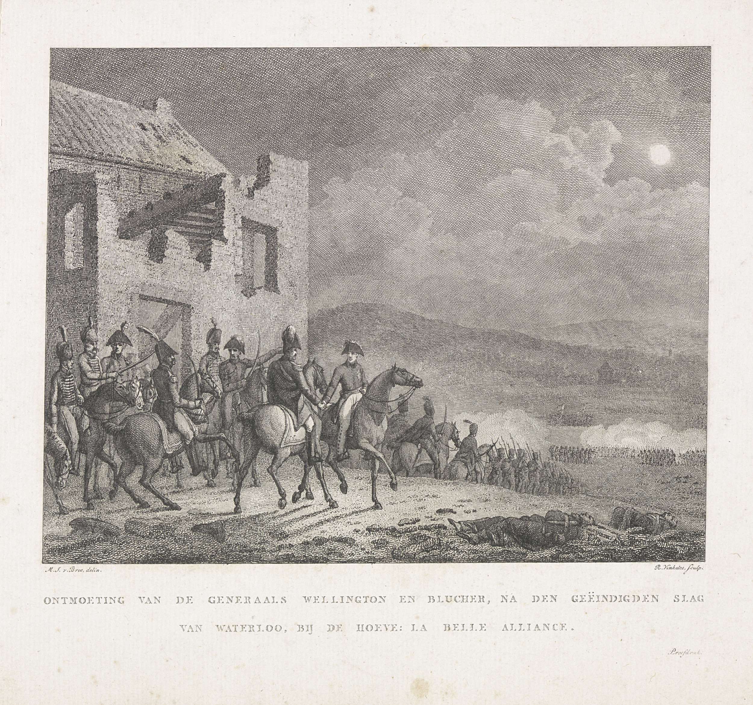 Ontmoeting tussen Wellington en Blücher na de slag b...