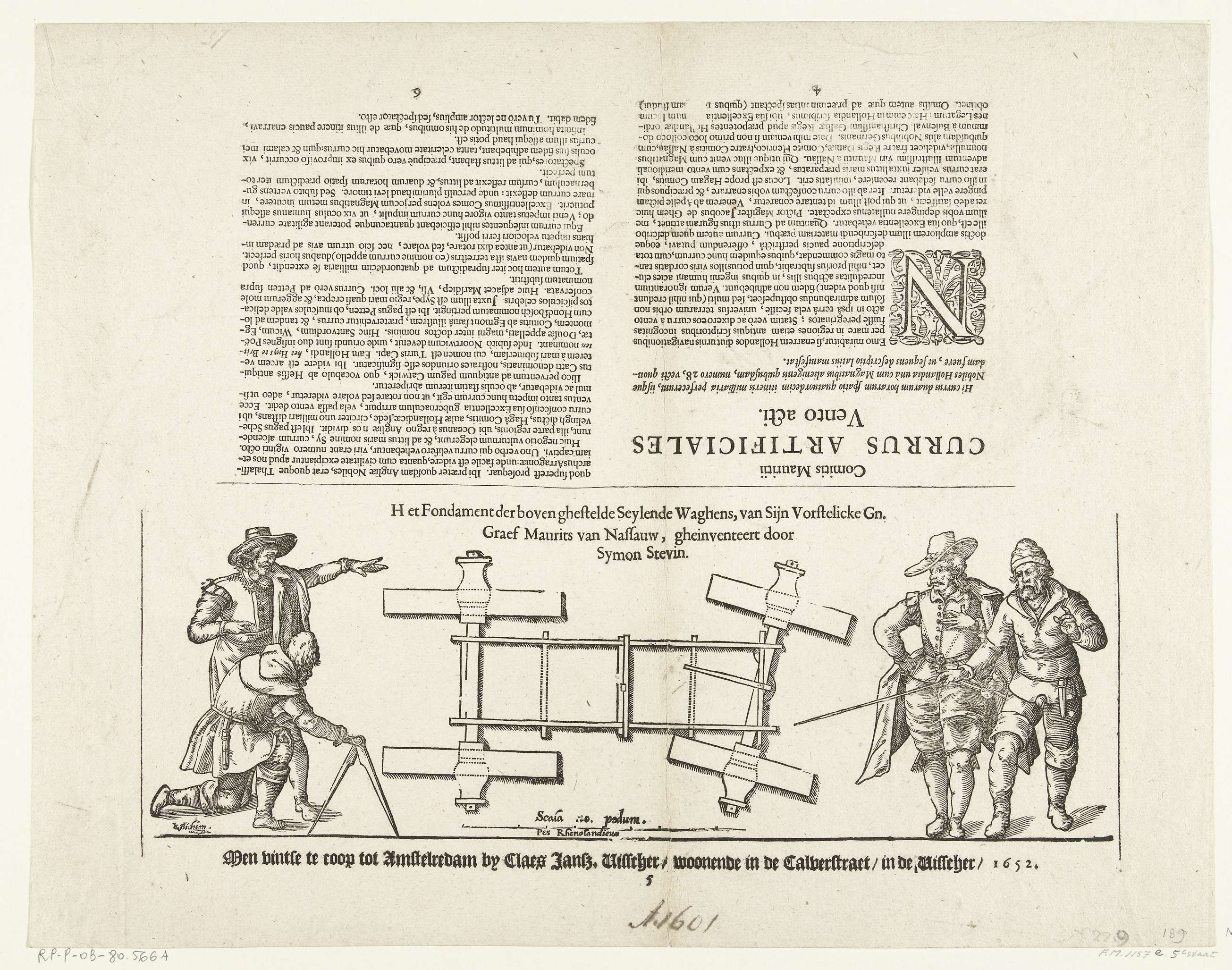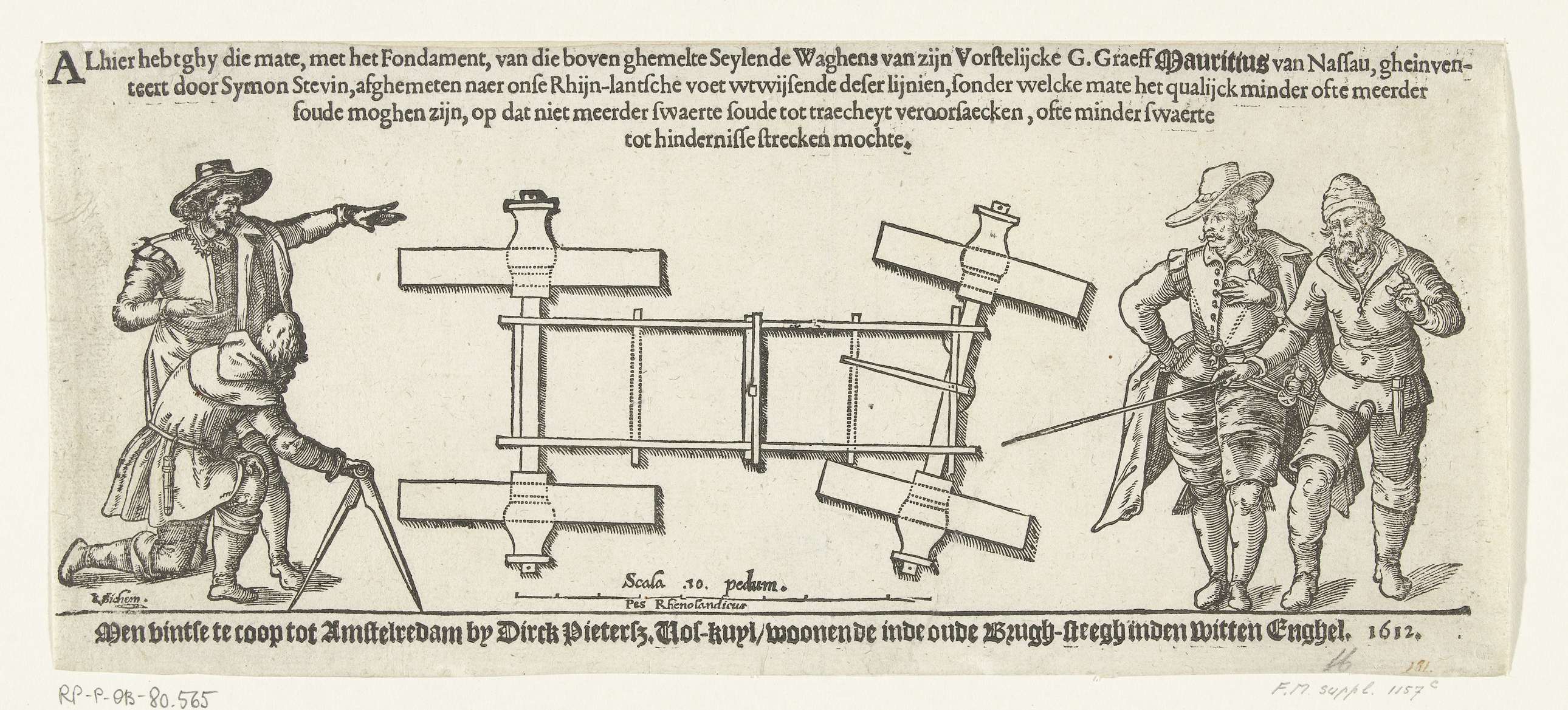 Diagram van de zeilwagen van Simon Stevin, 1602