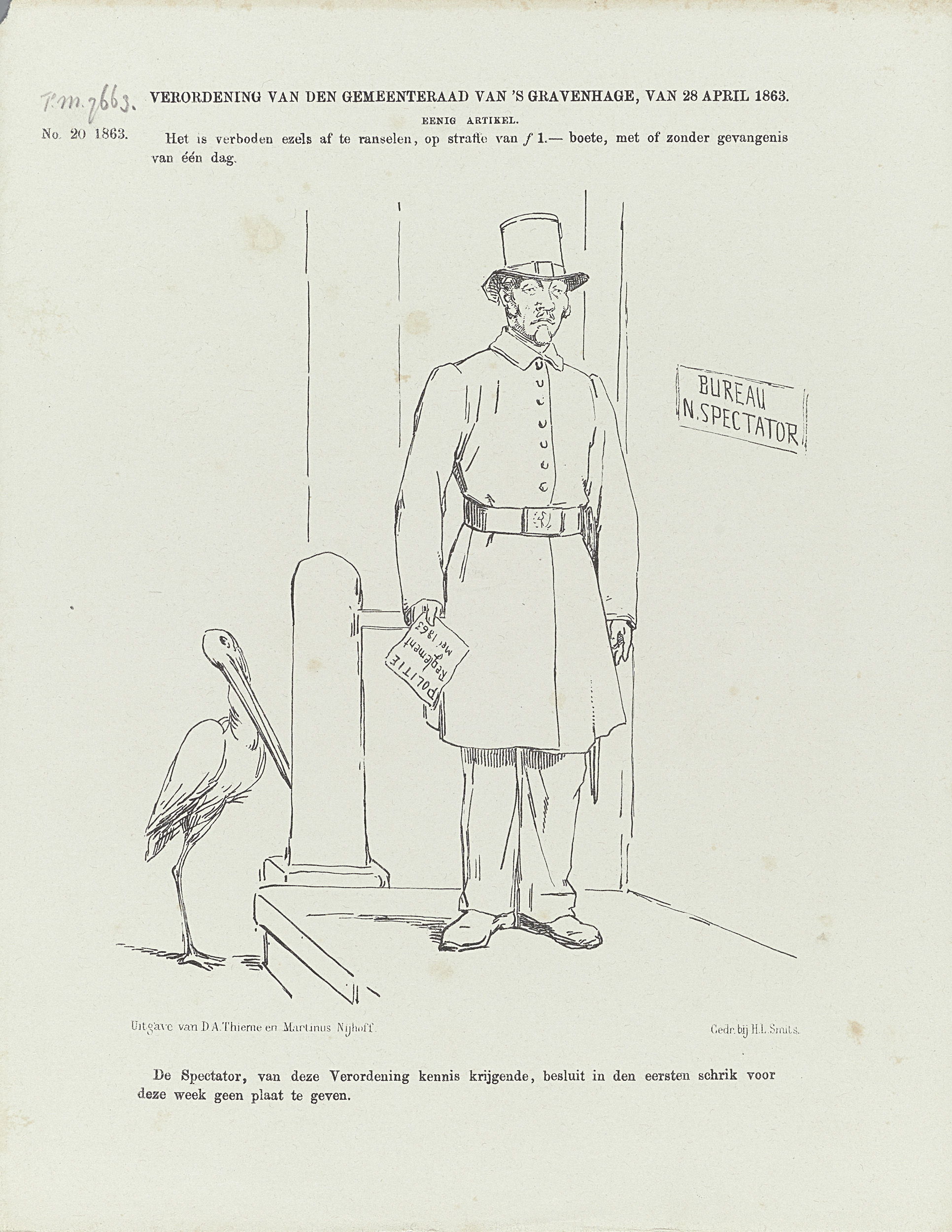 Spotprent op een verbod op het ranselen van ezels, 1863