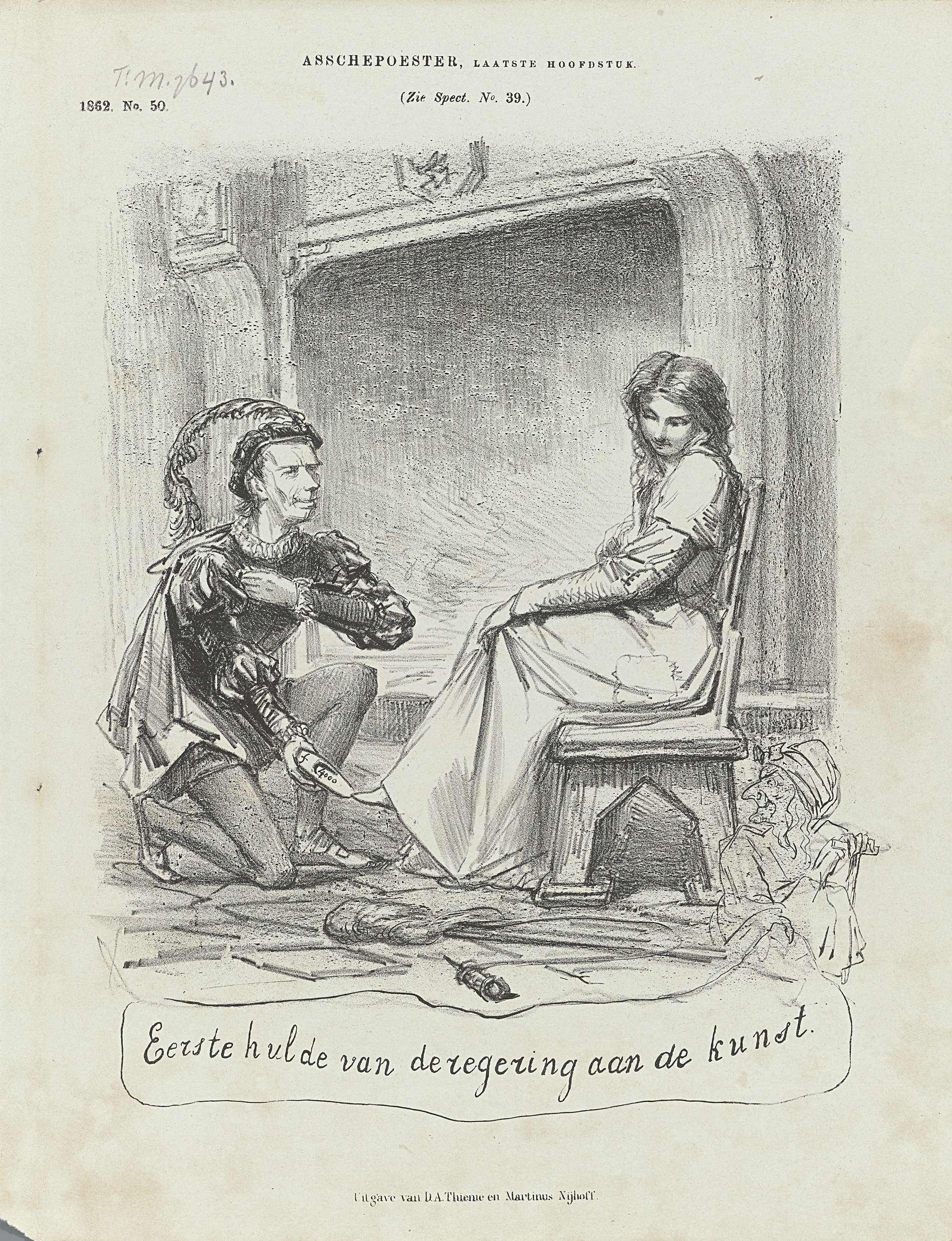Spotprent met Thorbecke als de prins bij Assepoester...