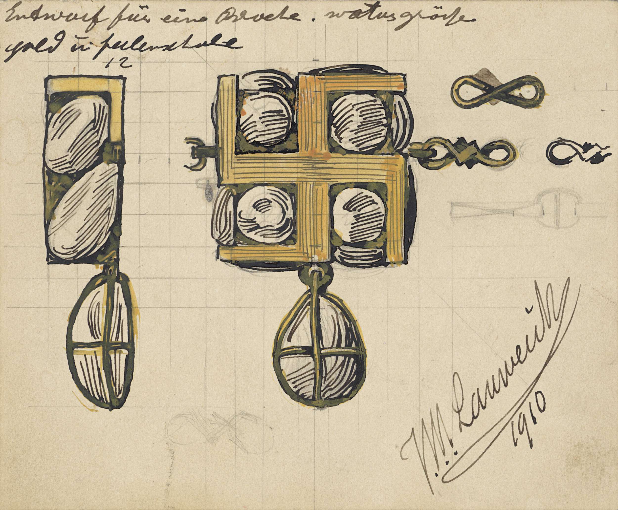 Ontwerpen voor een broche, ring en gesp