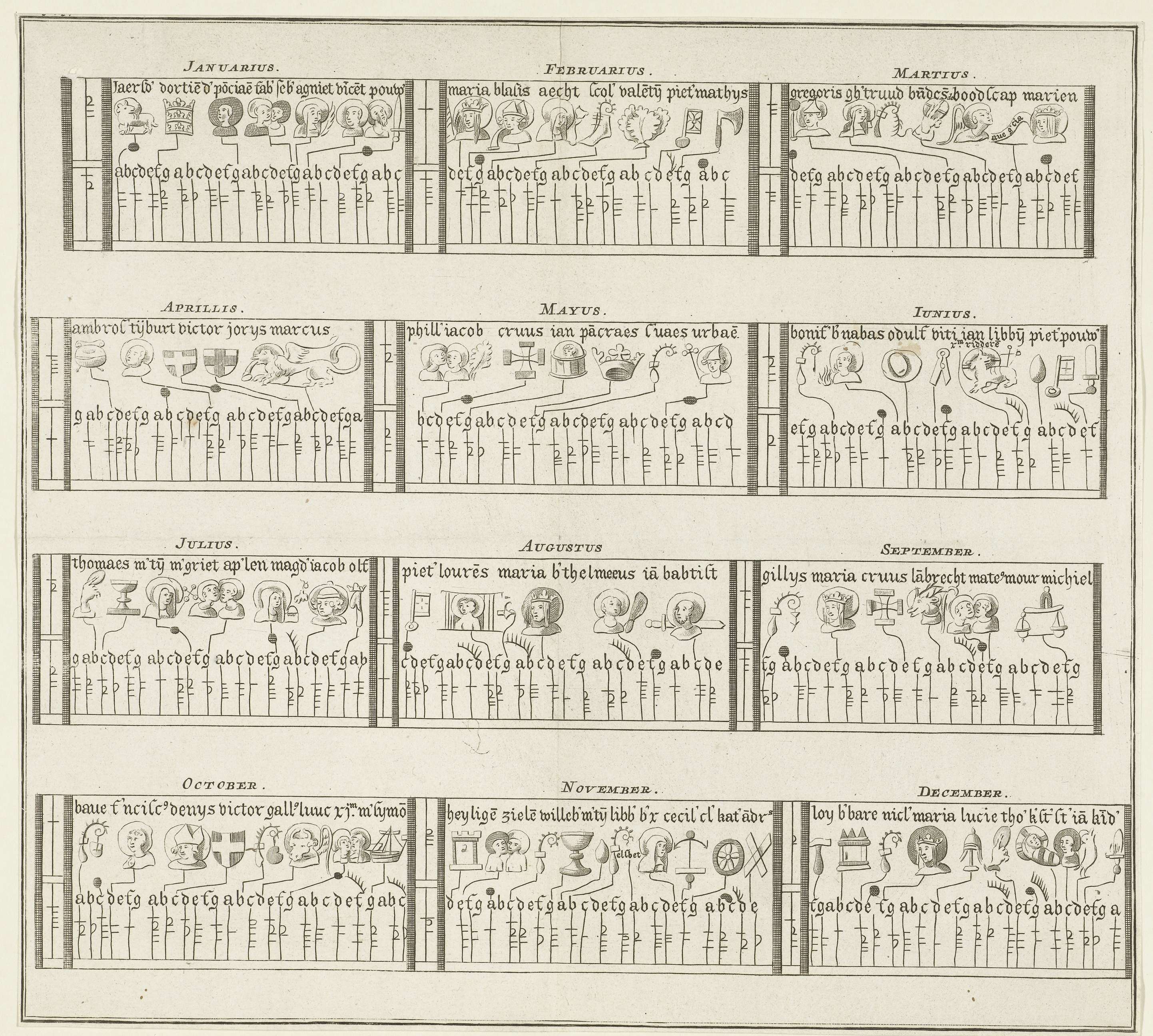 Christelijke almanak met de heiligen van iedere maan...
