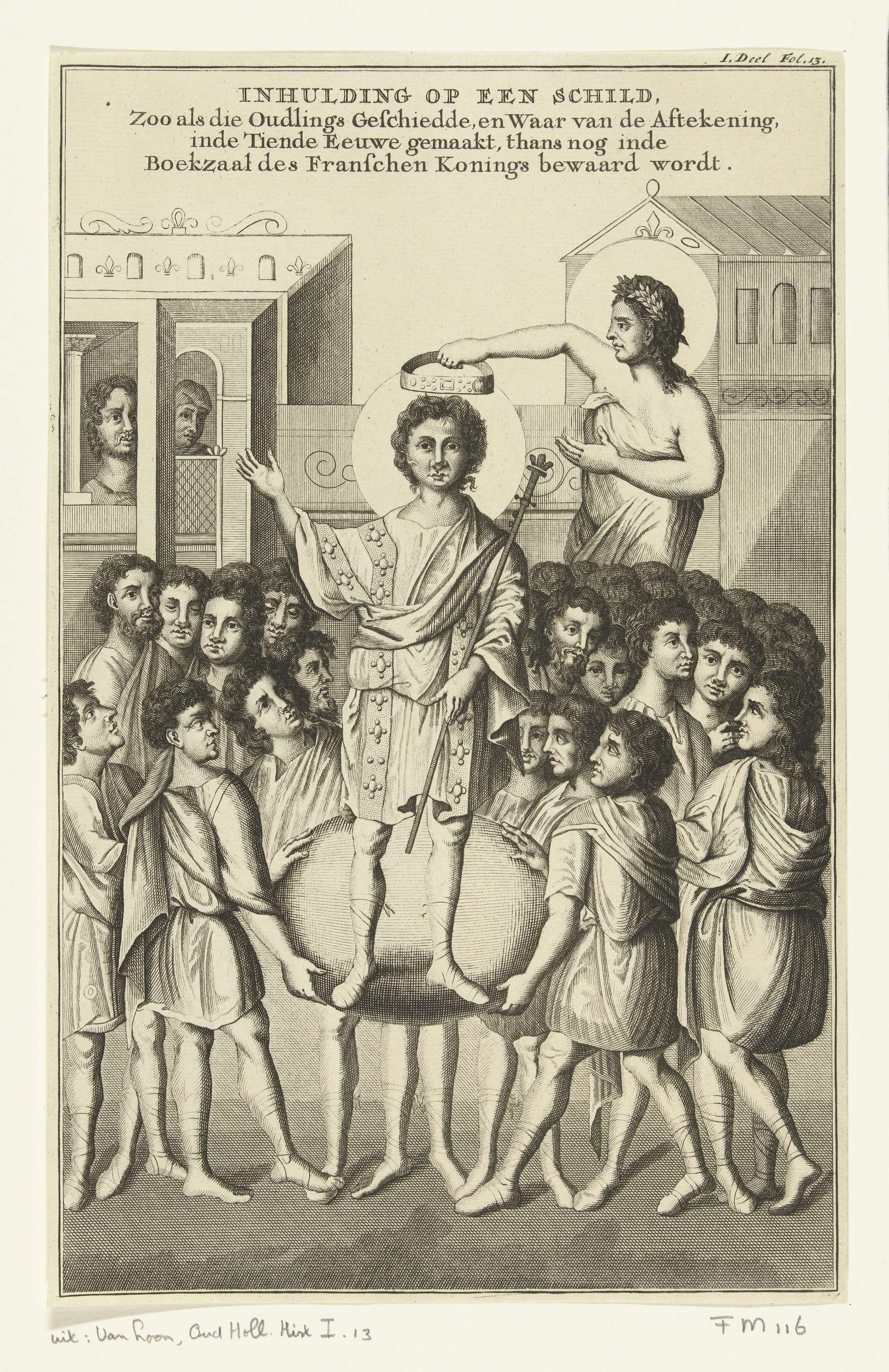 Inhuldiging op een schild, naar een 10e eeuwse tekening