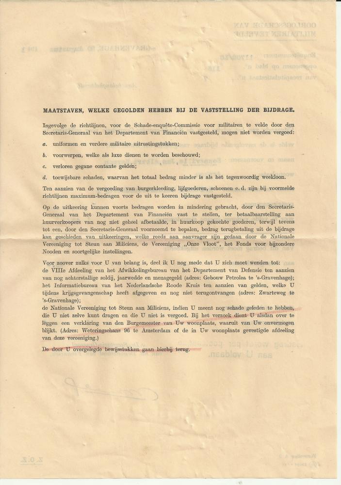 Oorlogsschade van militairen ter velde 20 augustus 1941