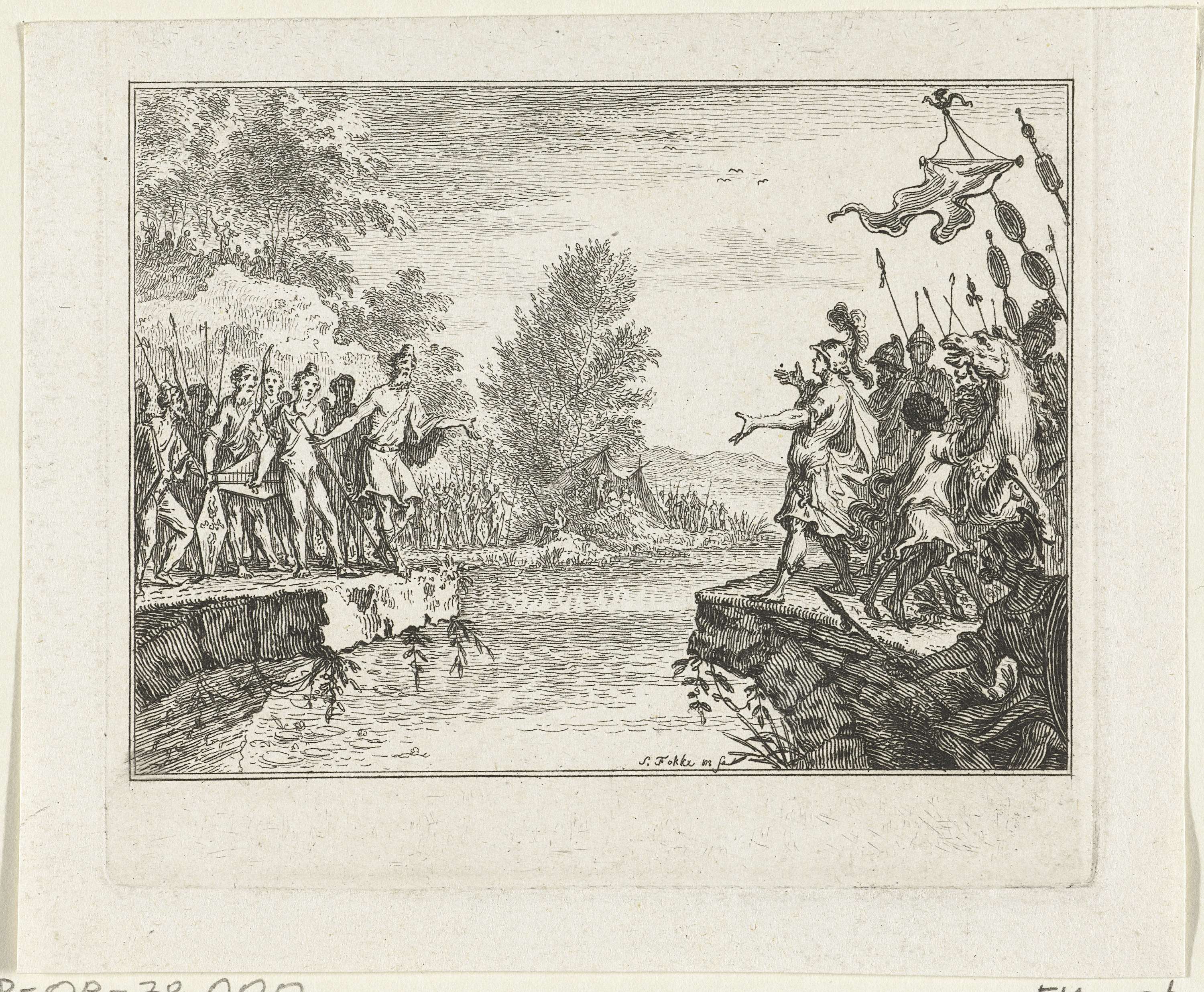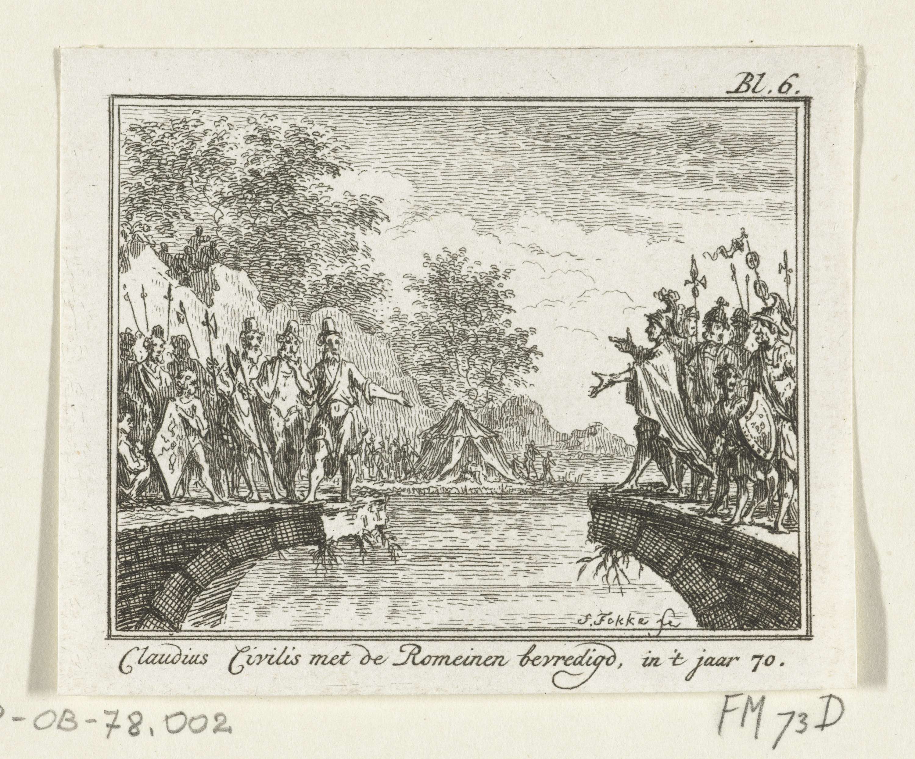 Civilis en Cerialis onderhandelen op de afgebroken b...
