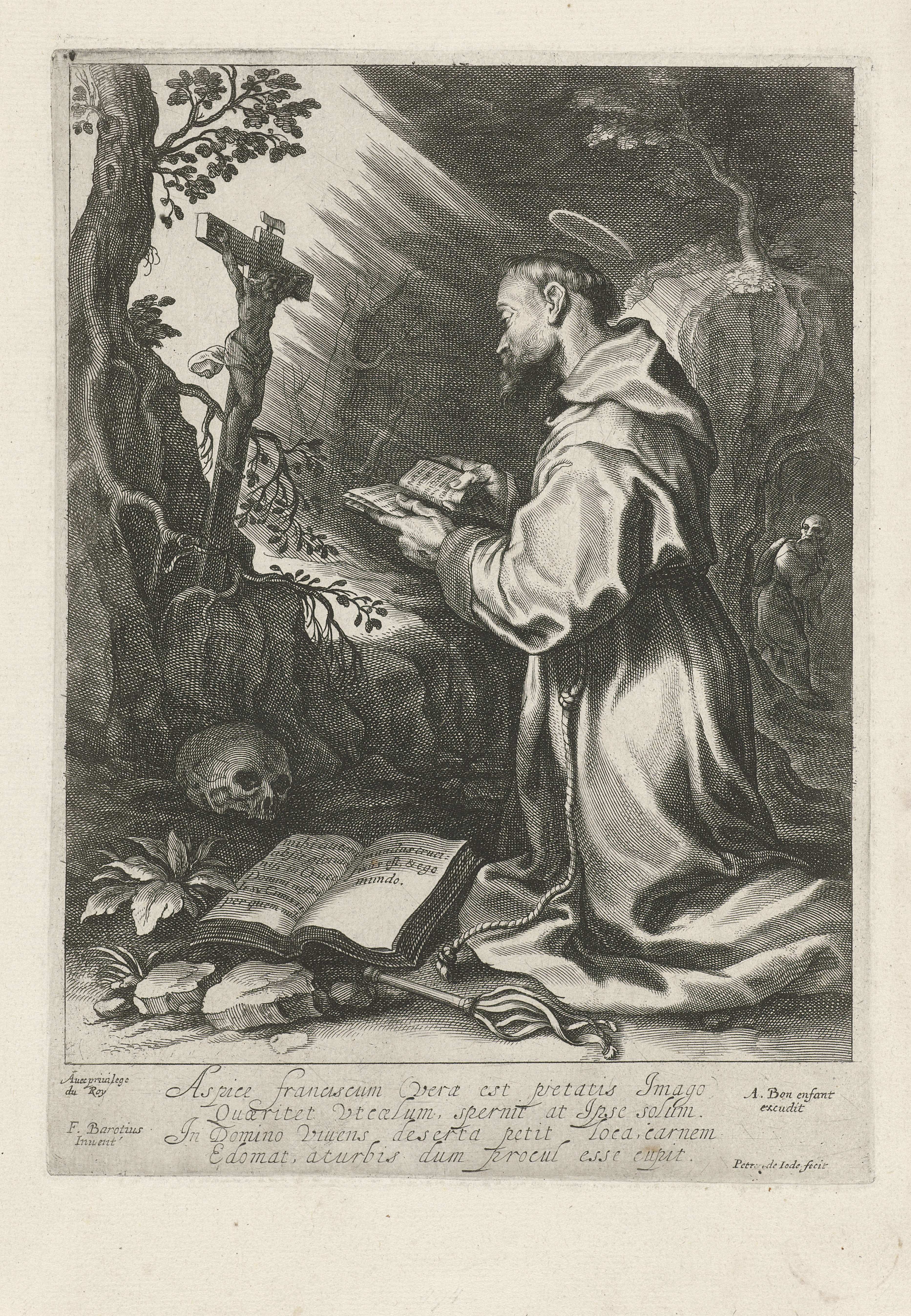 De heilige Franciscus, knielend voor crucifix