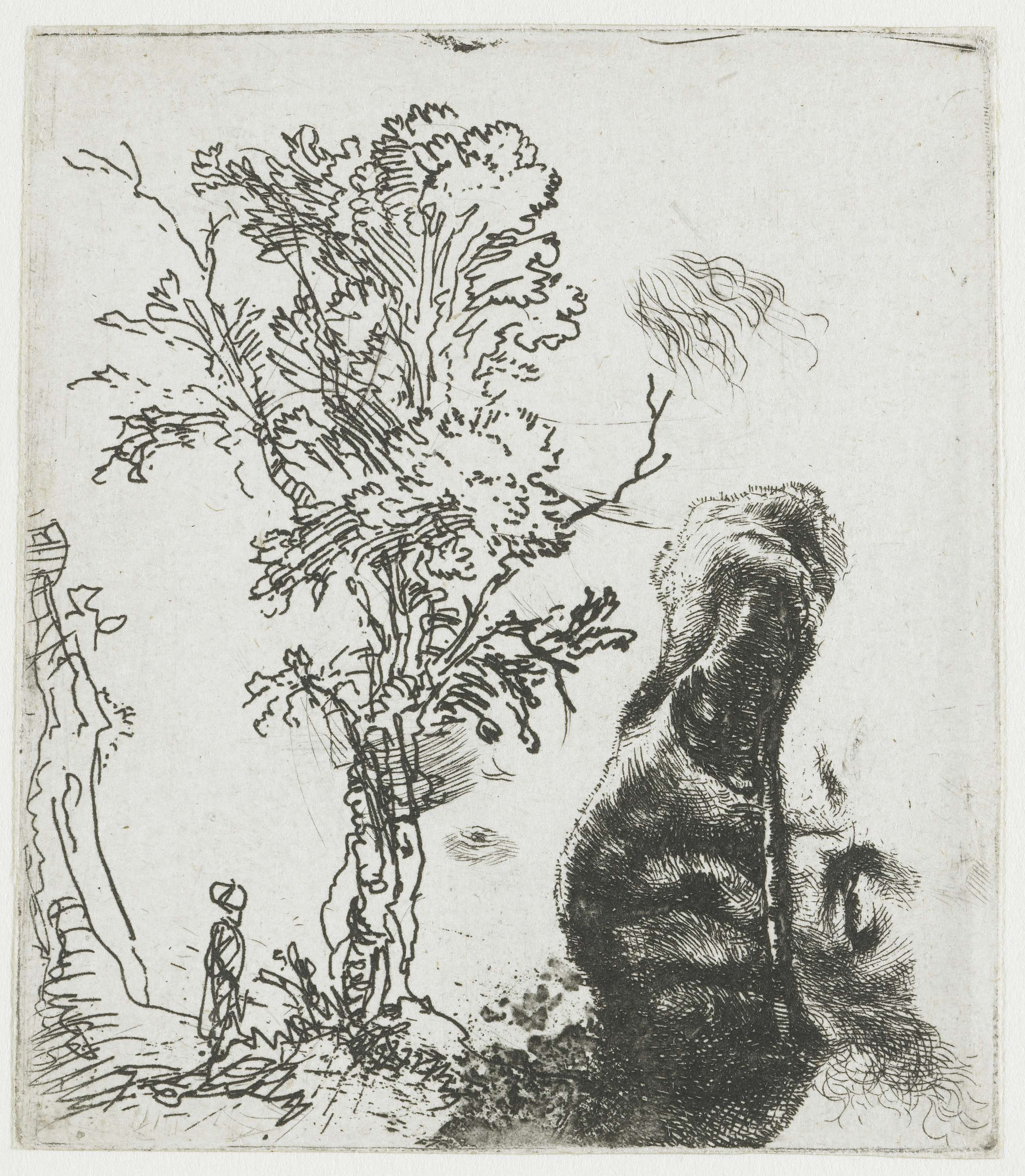Studieblad met een boom, en het bovenste deel van Re...