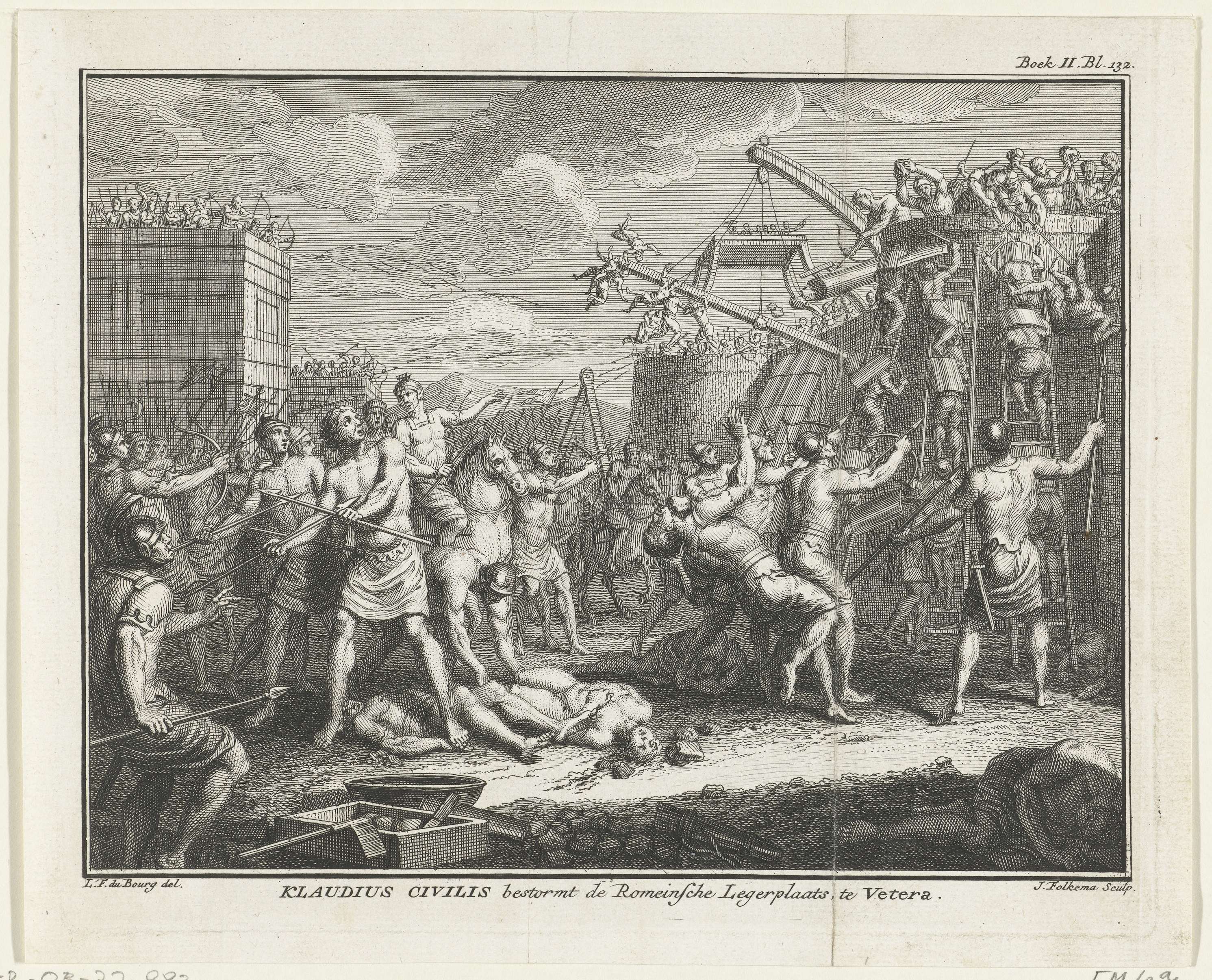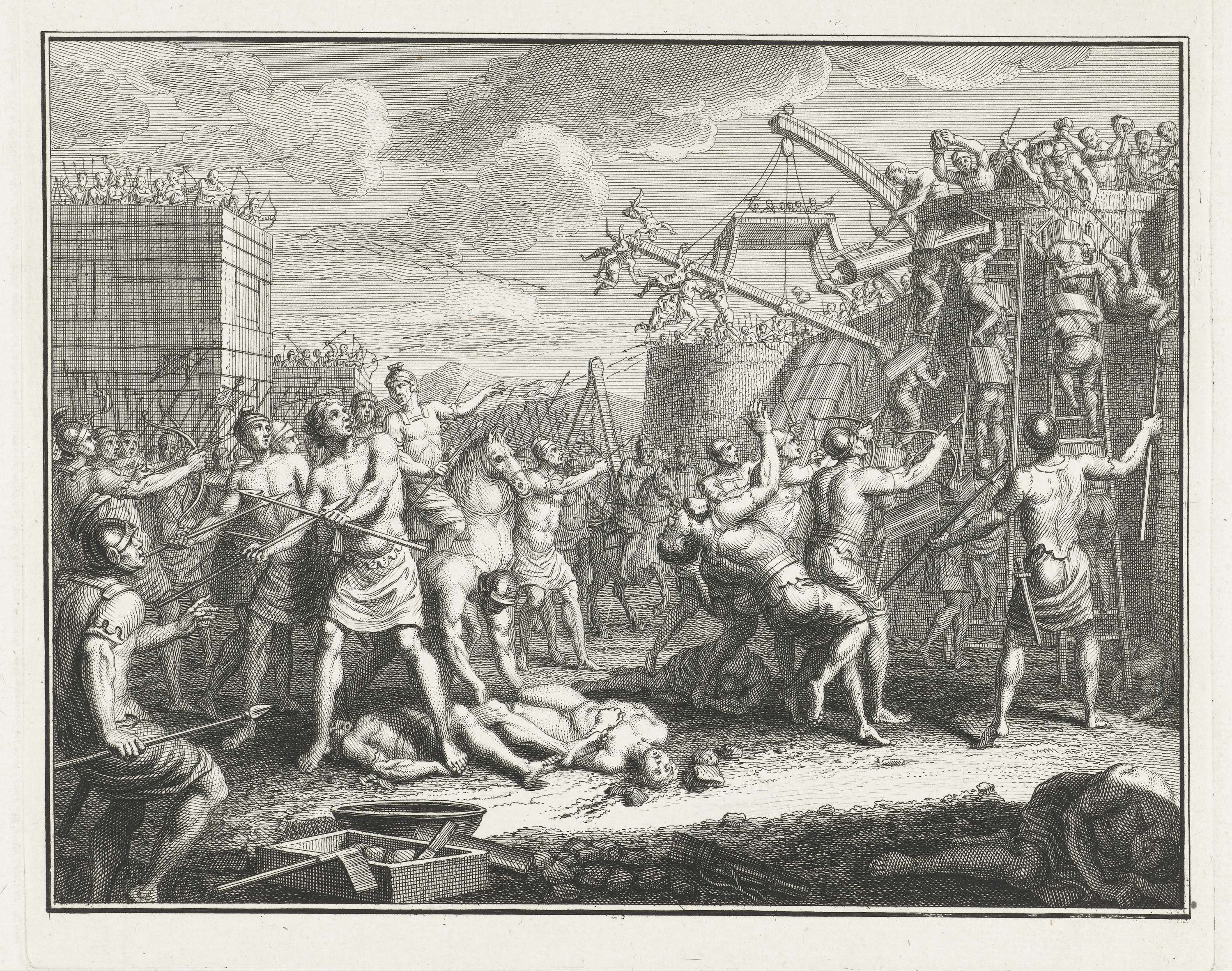 Troepen van Civilis bestormen de Romeinse vesting te...