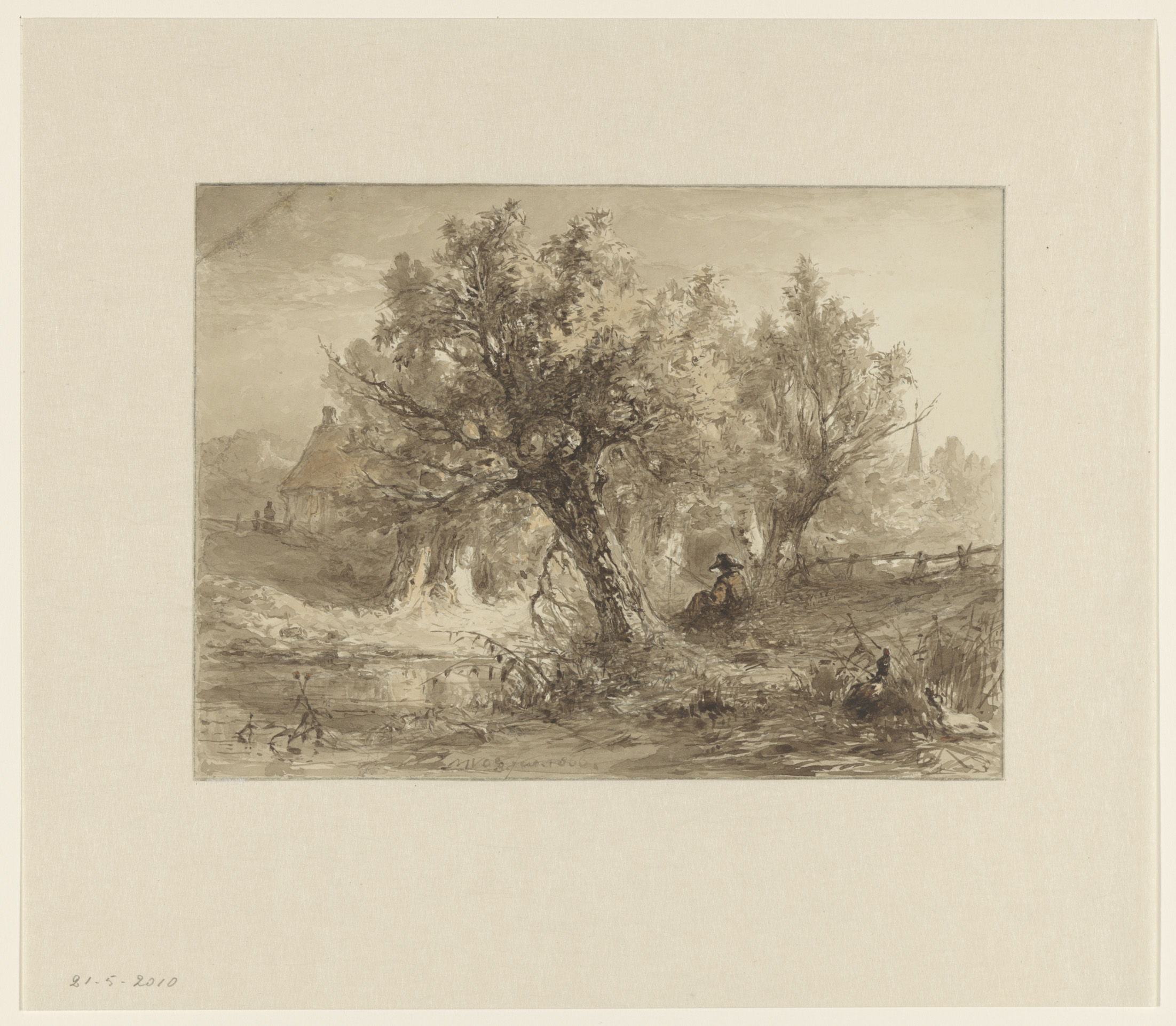 Landschap met hengelaar onder wilgen