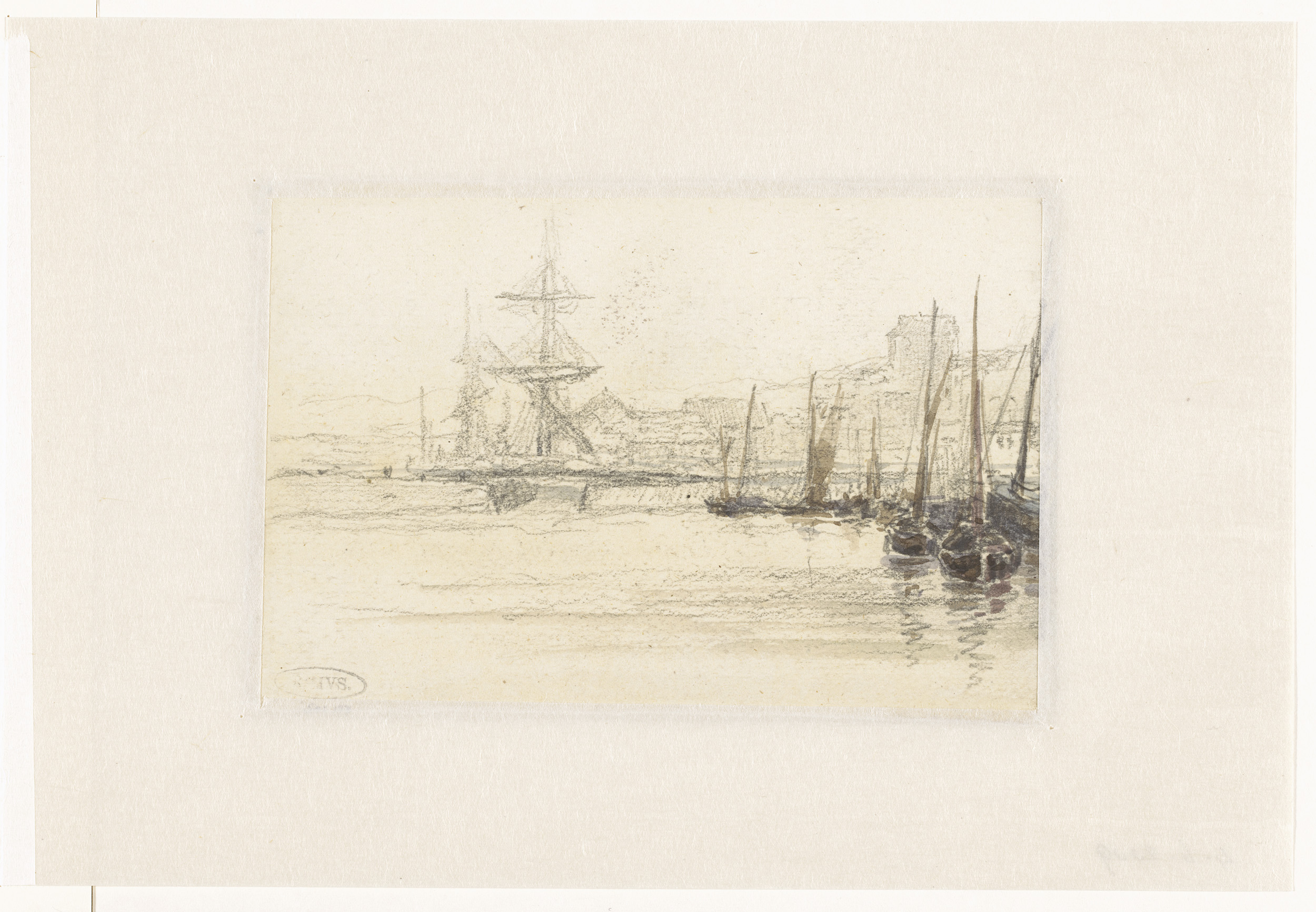 Gezicht op vissershaven van Honfleur, met grote sche...