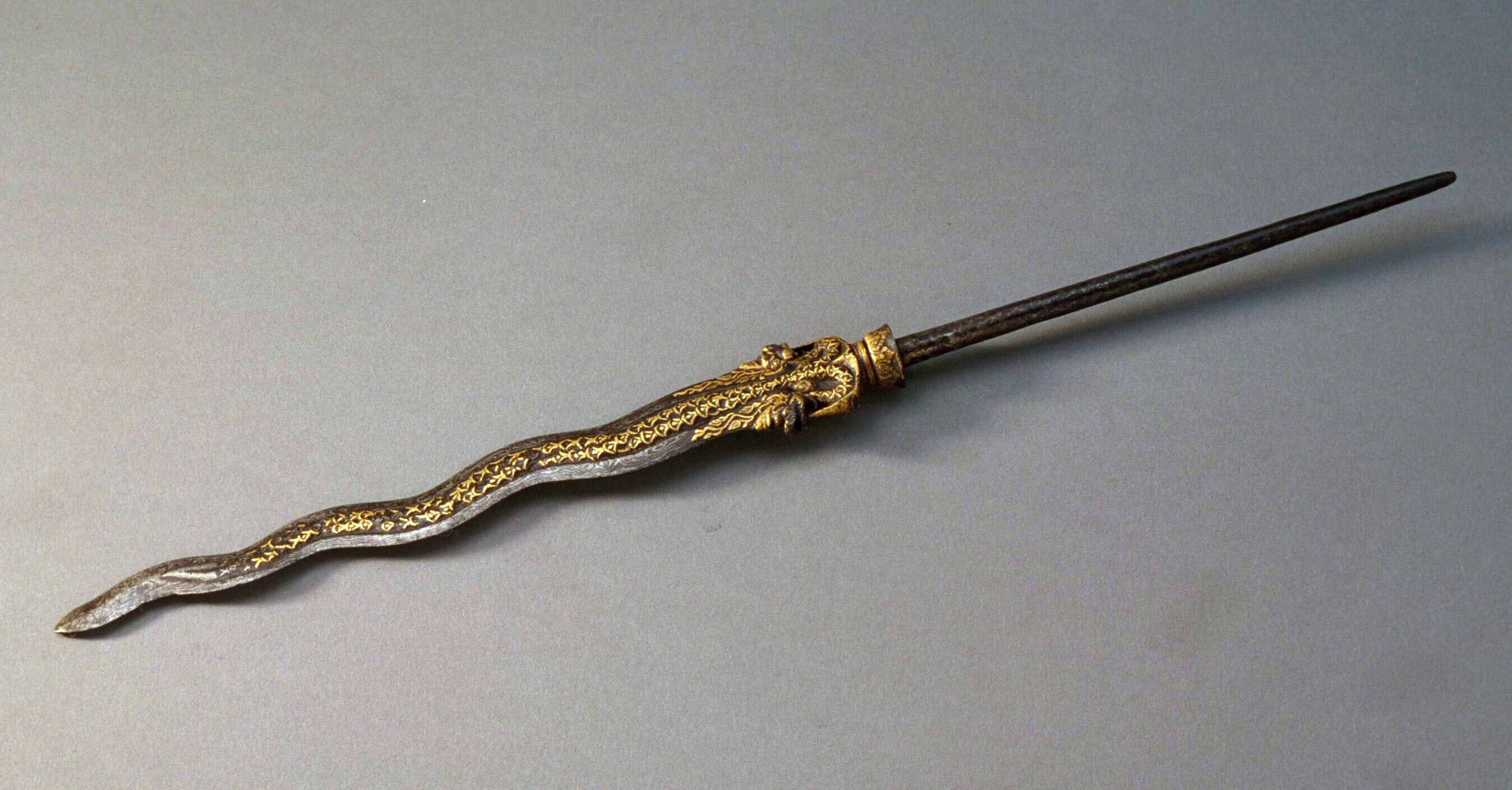IJzeren lanspunt, met goud en zilver geïncrusteerd
