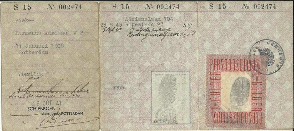 Persoonsbewijs van Hermanus Adrianus Piek