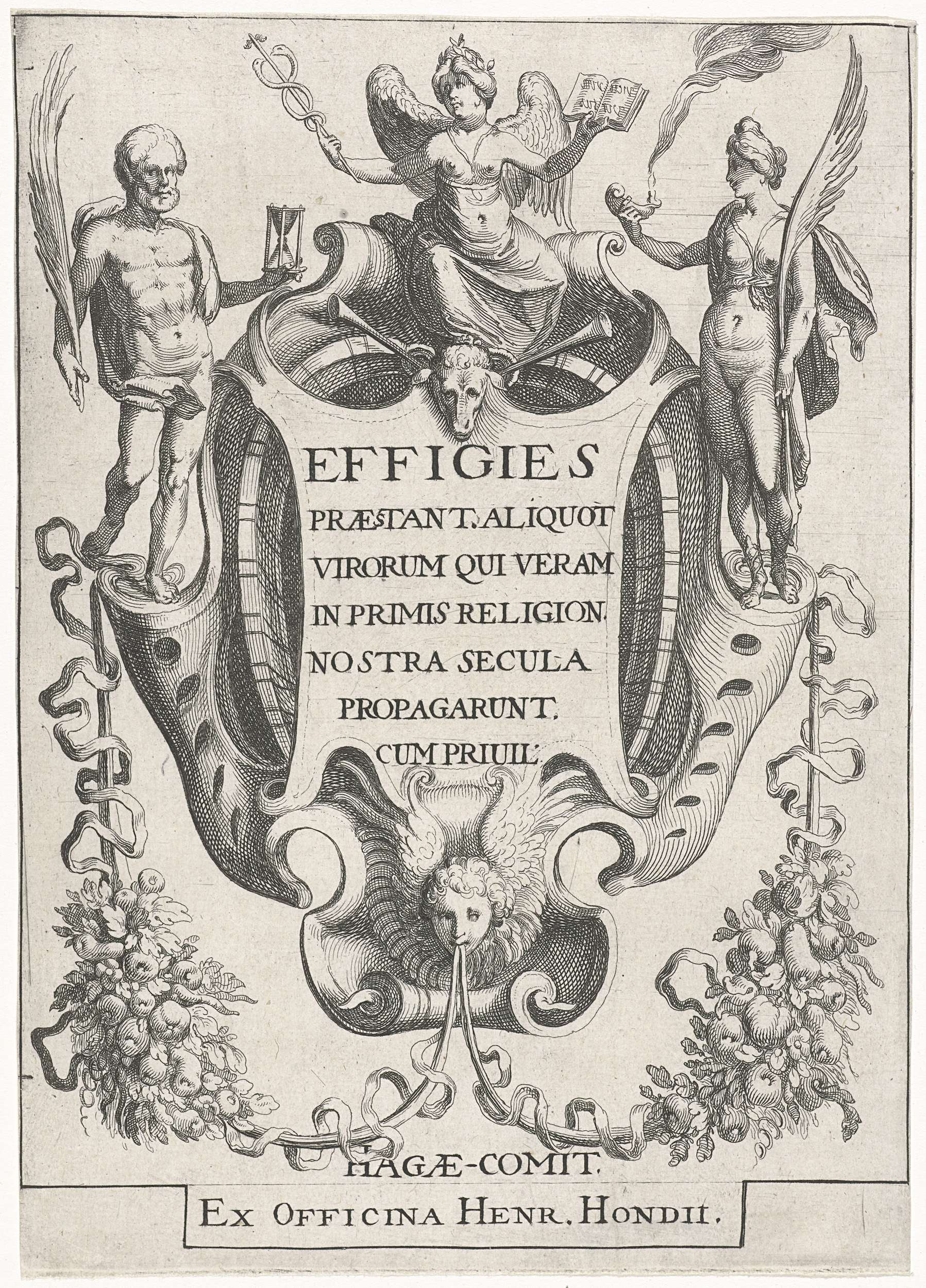 Cartouche met allegorische figuren
