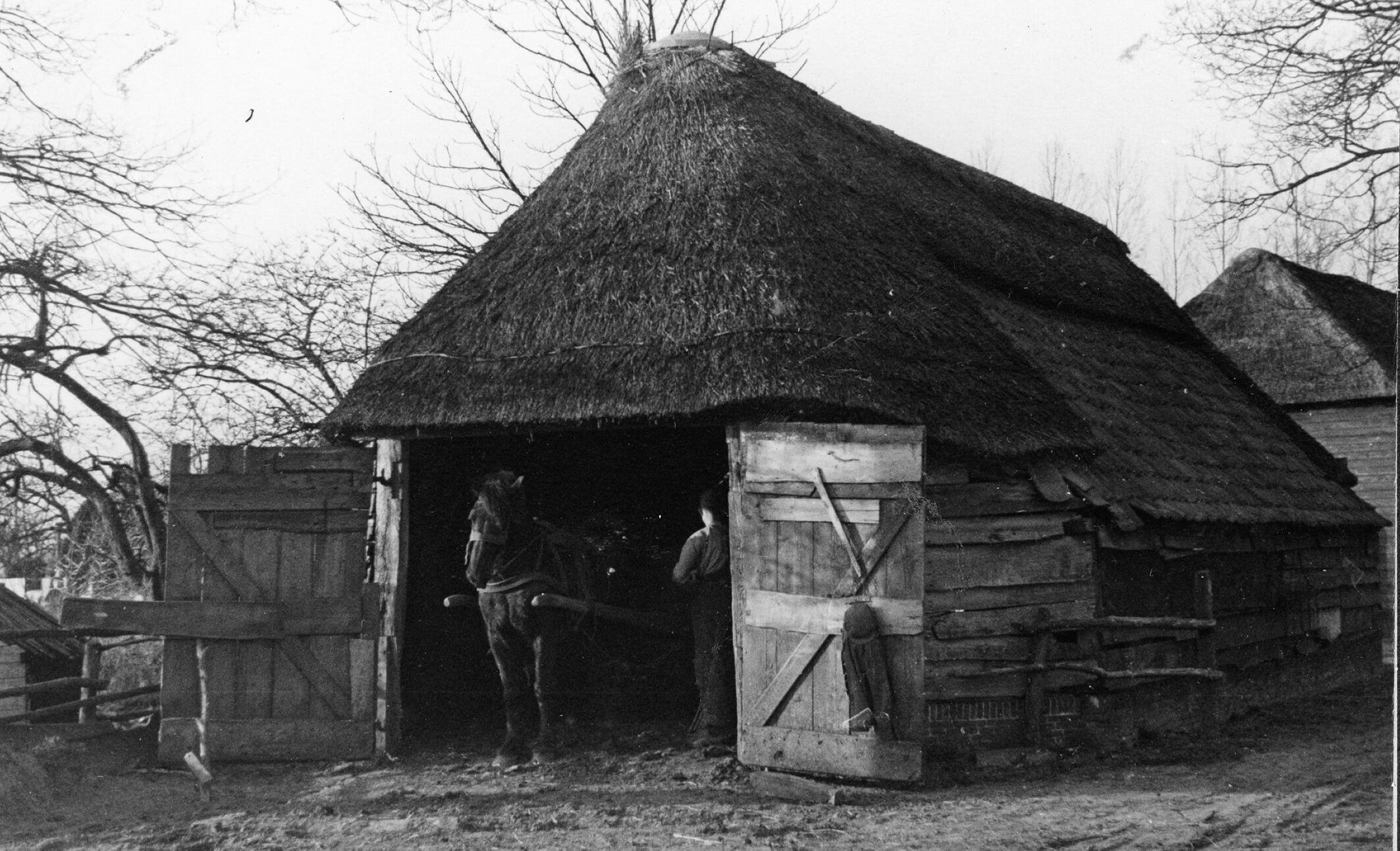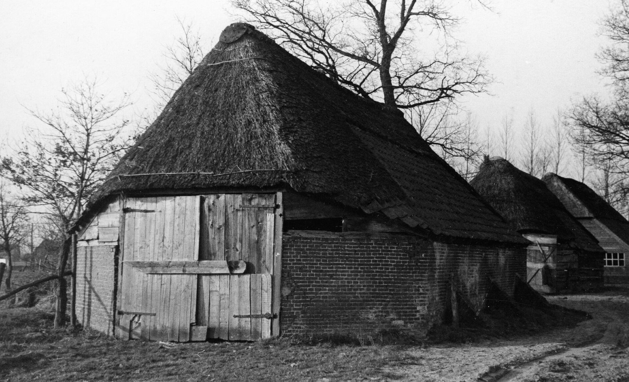 Hooiberg en schuurtje, Manen, 1938 (zwart-wit foto)