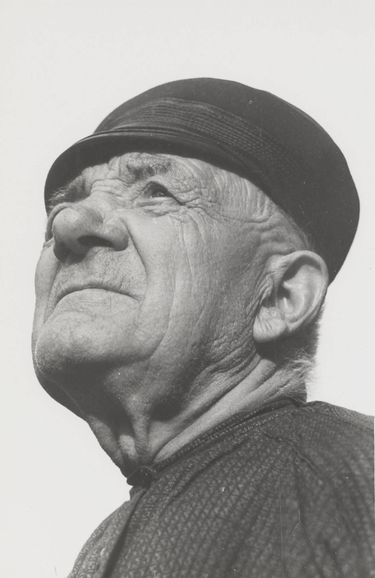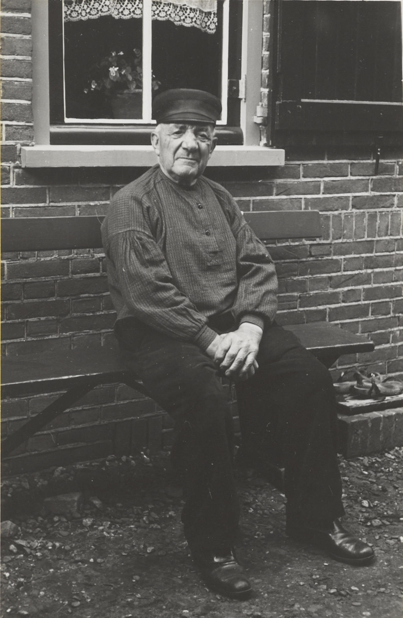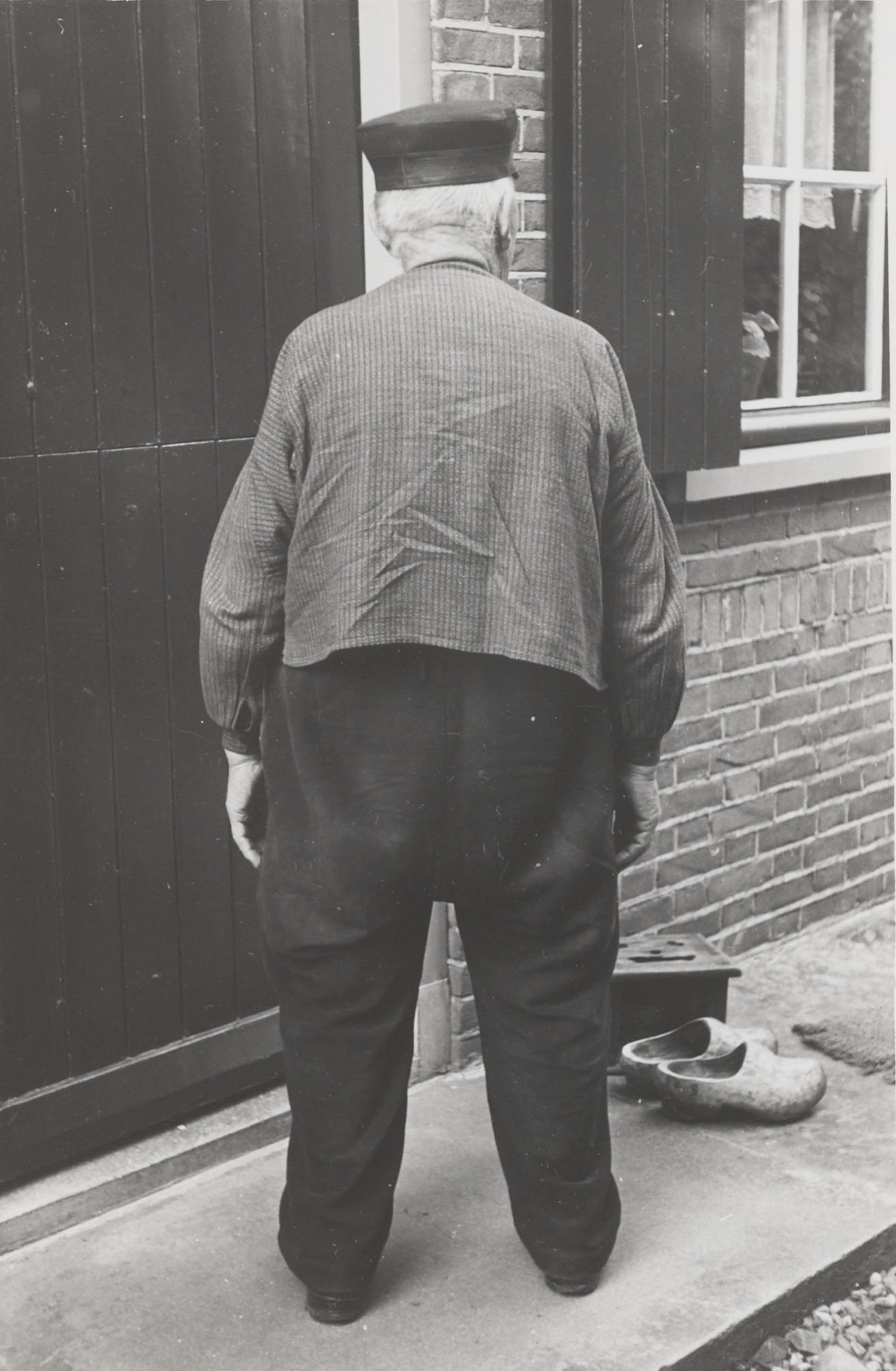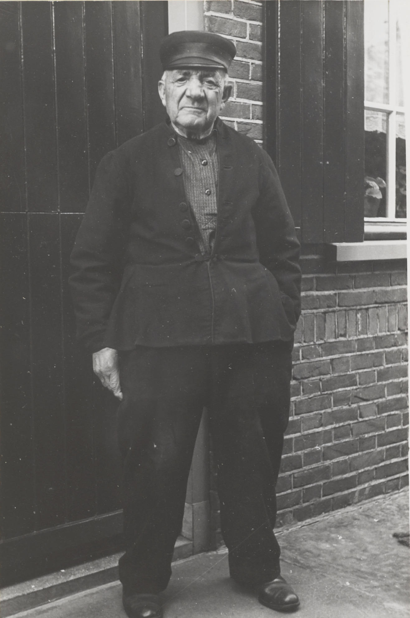Visser in streekdracht, Huizen, 1945 (zwart-wit foto)