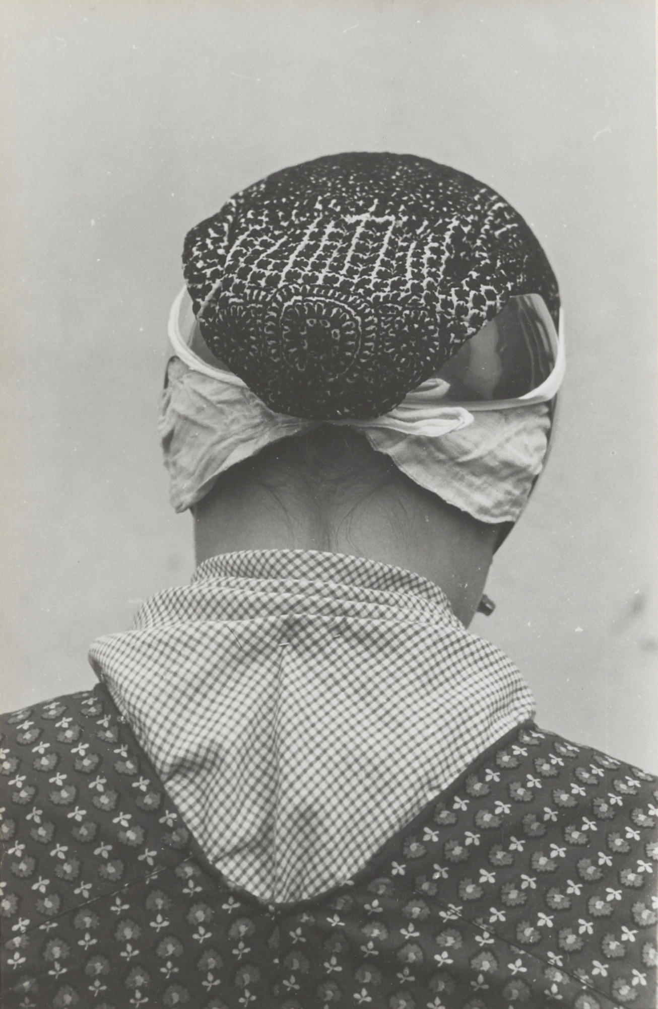 Vrouw in streekdracht, Huizen, 1945 (zwart-wit foto)