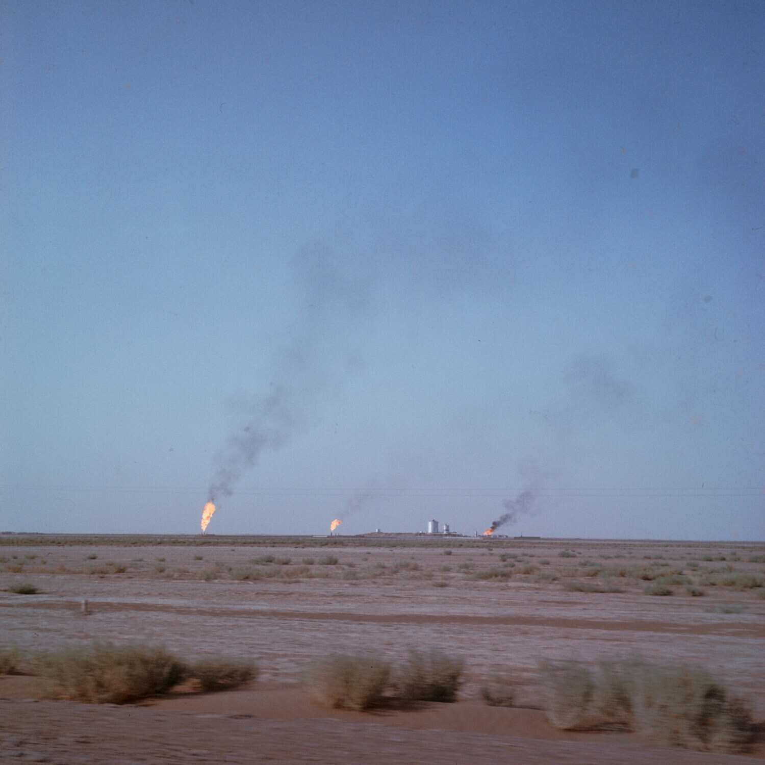 Verbranden van gas op boorterrein bij Ahwaz in Iran