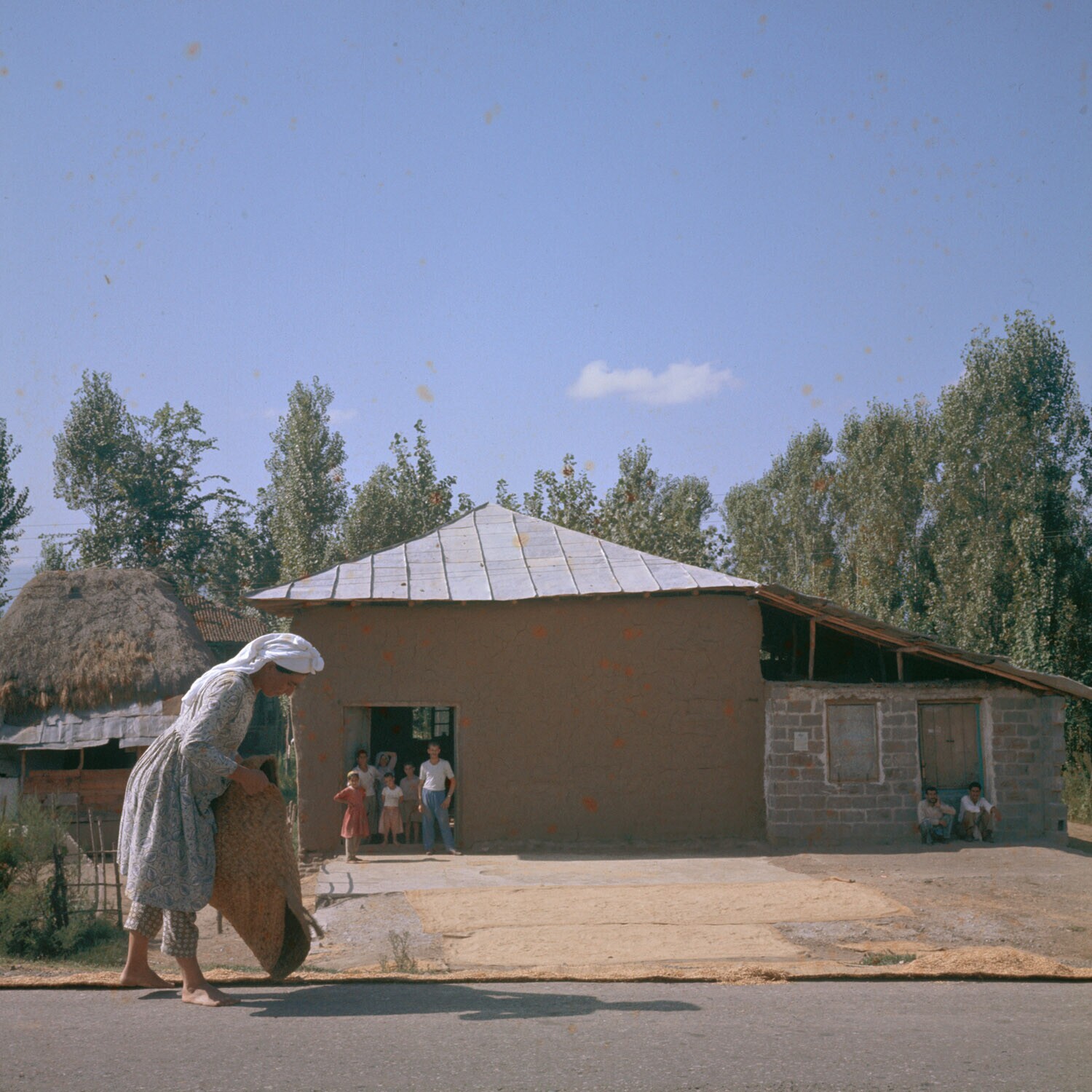 Rijst dorsen langs de weg naar de Kaspische kust.