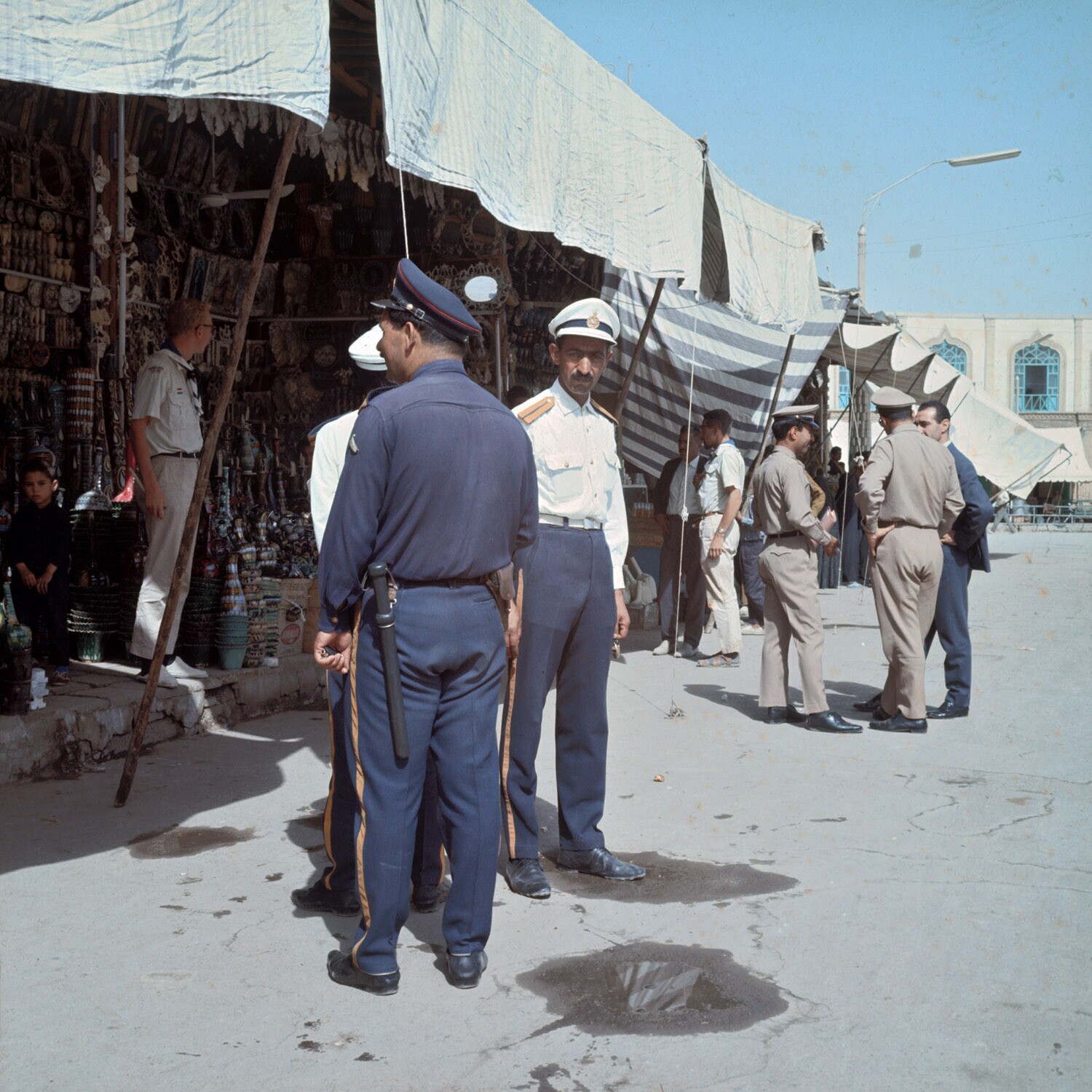 Politieagenten (soldaten) in een dorpje nabij Qom.