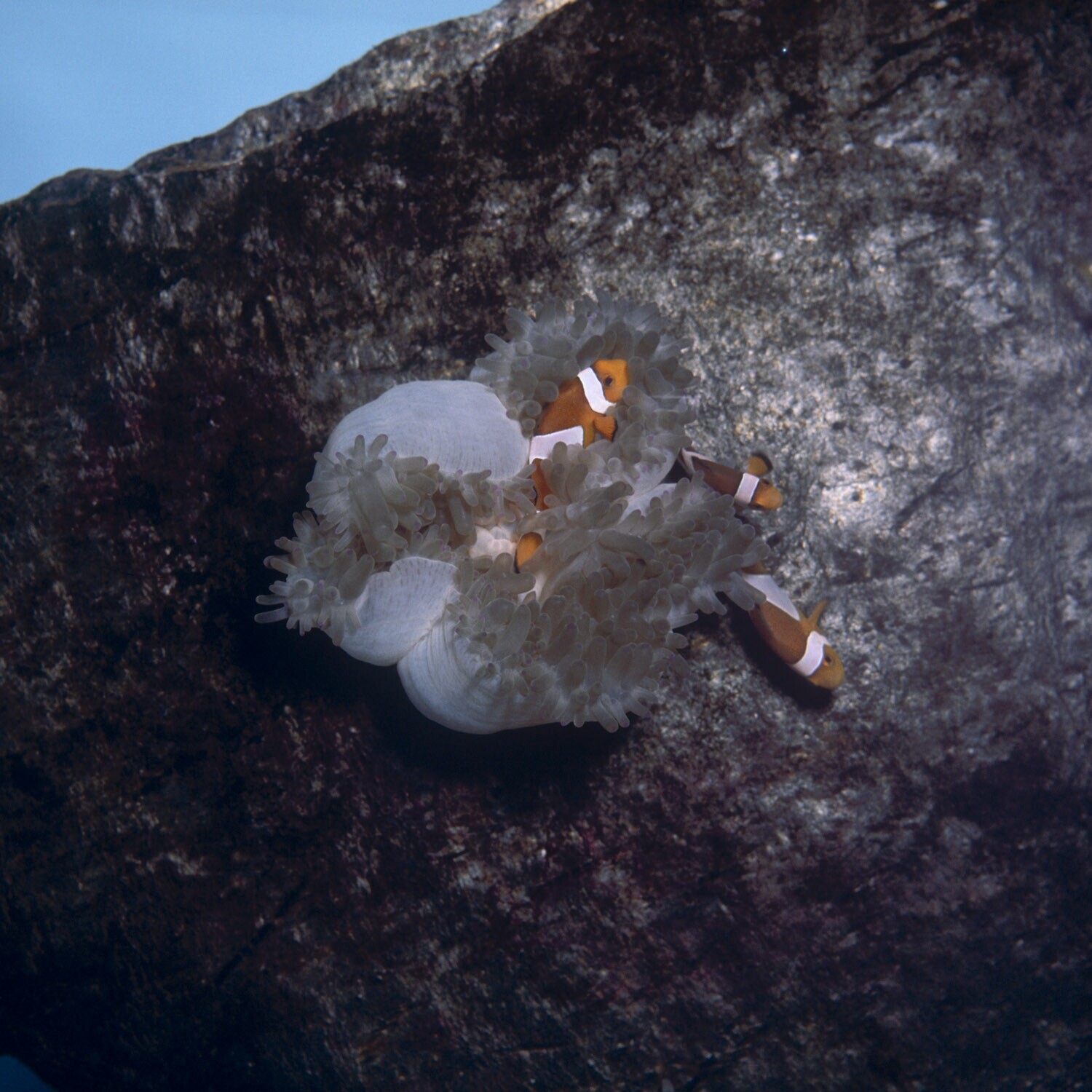 Oranje vissen bij zeeanemonen in het rif, Ambon
