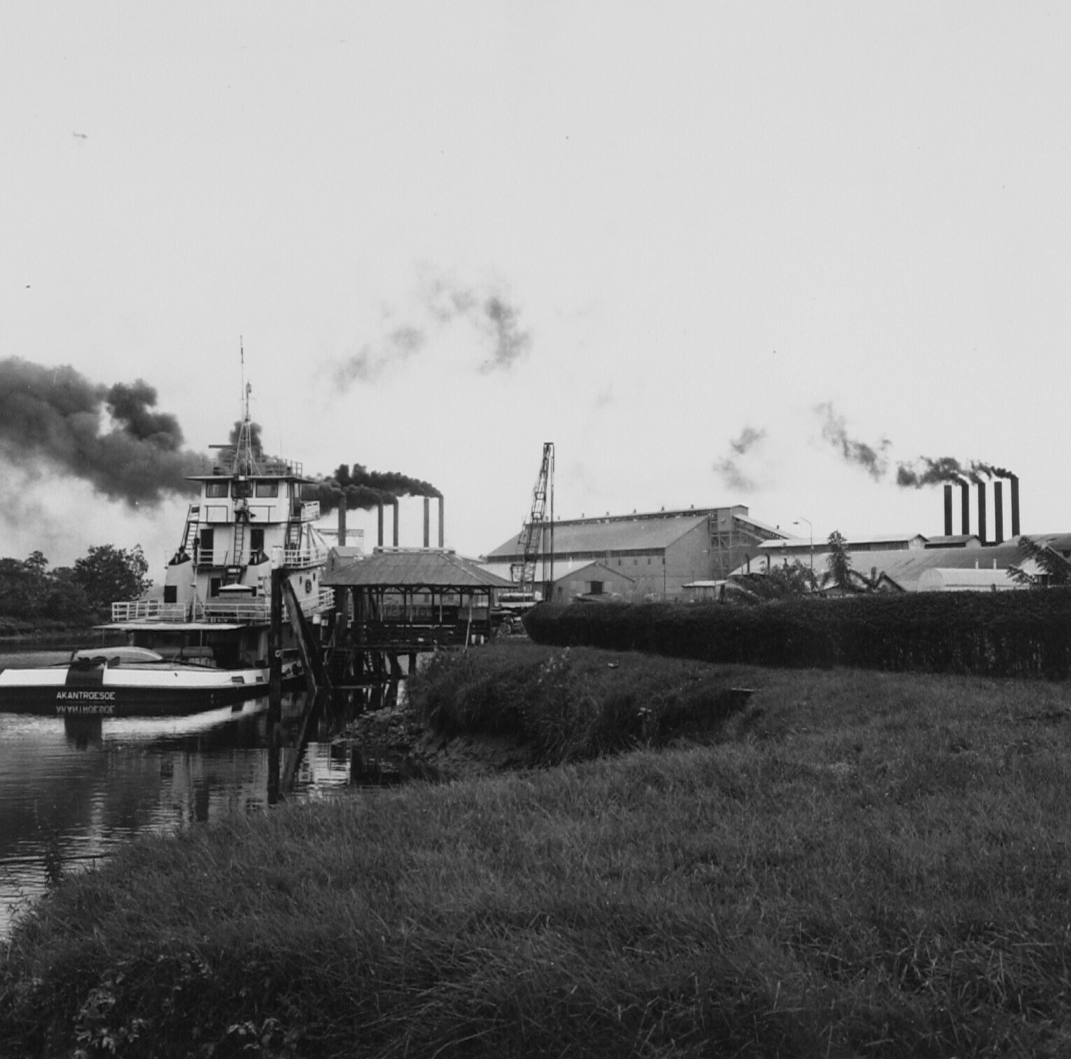 Suralco.Grote ertstanker wordt geladen te Paranam aa...
