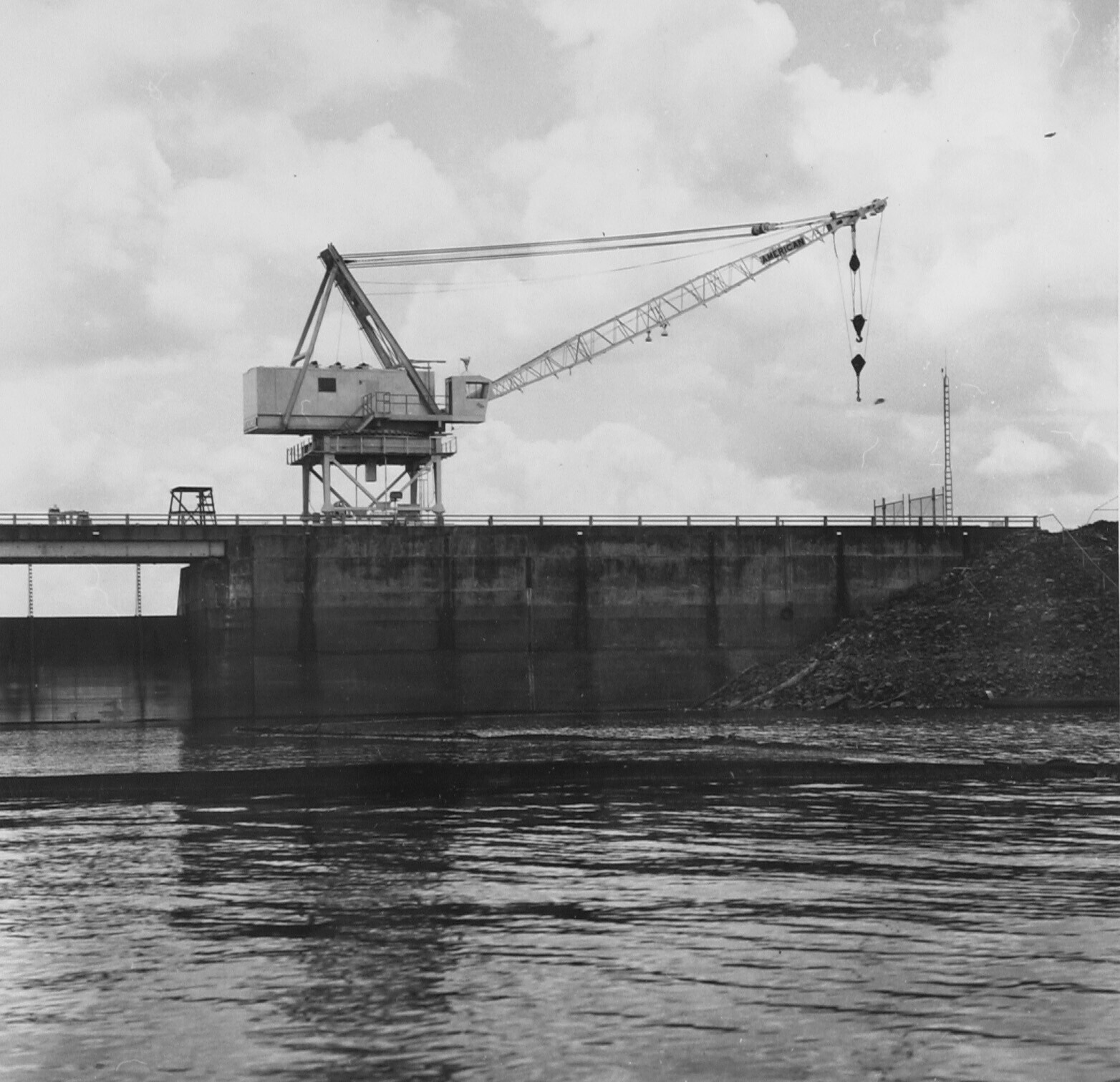 Van Blommensteynmeer-Een enorme kraan op de dam.Ter ...