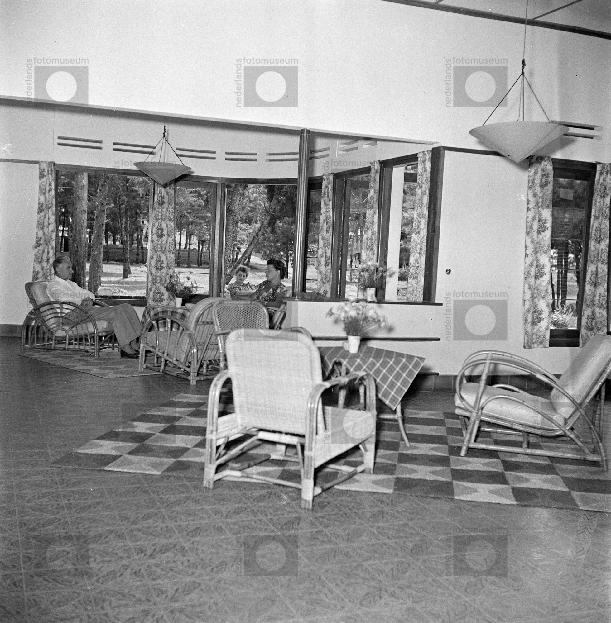 Nederlanders zitten in de recreatiezaal van een vill...