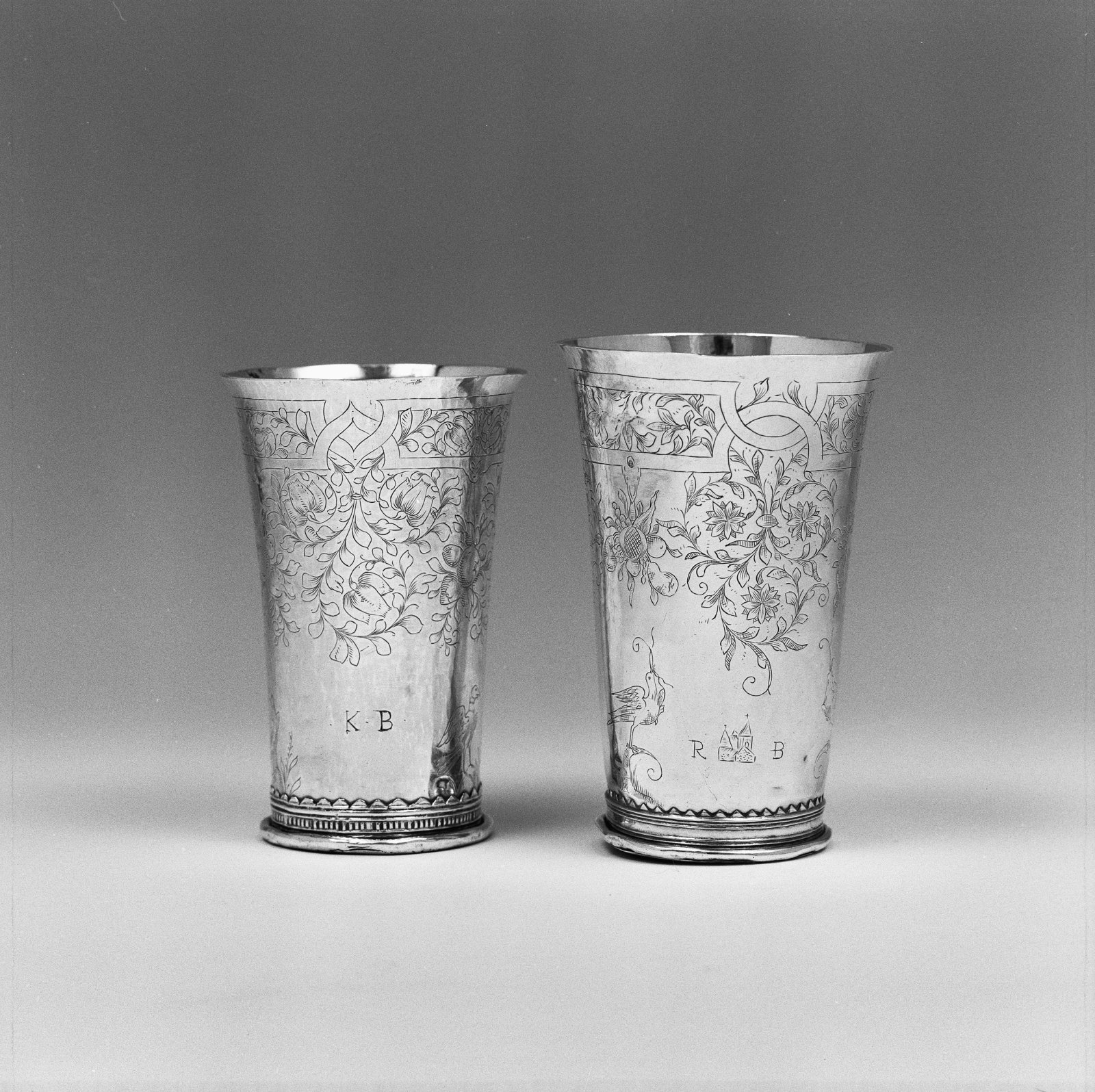 Interieur, twee zilveren avondmaalsbekers, links (16...