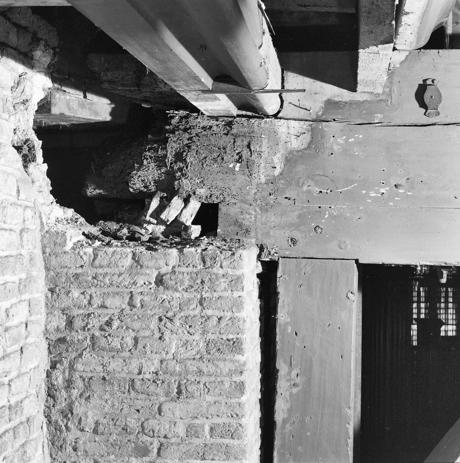 Interieur, vermolmde oplegging trekbalk koor