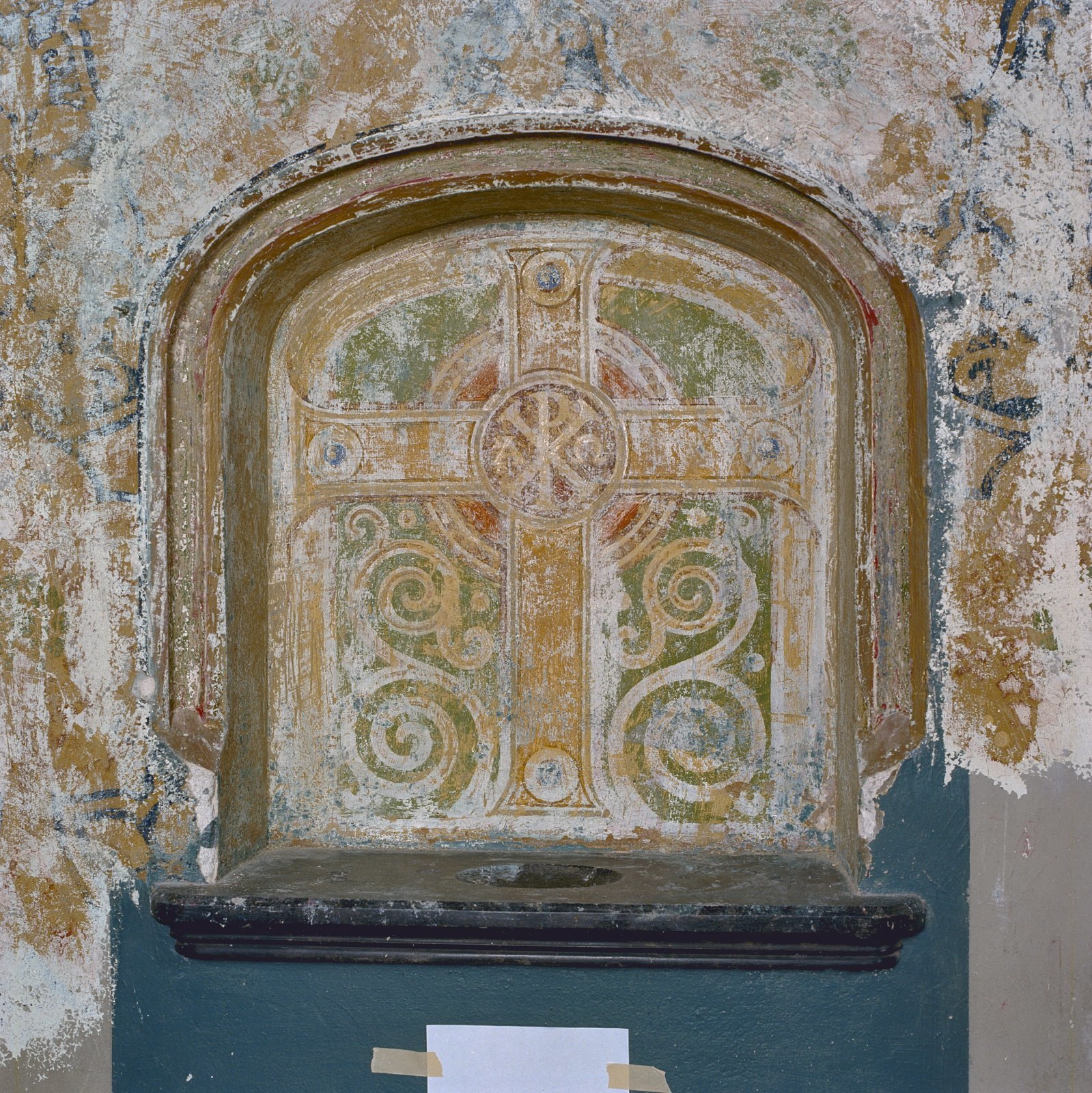 Interieur, detail van gewelfschildering