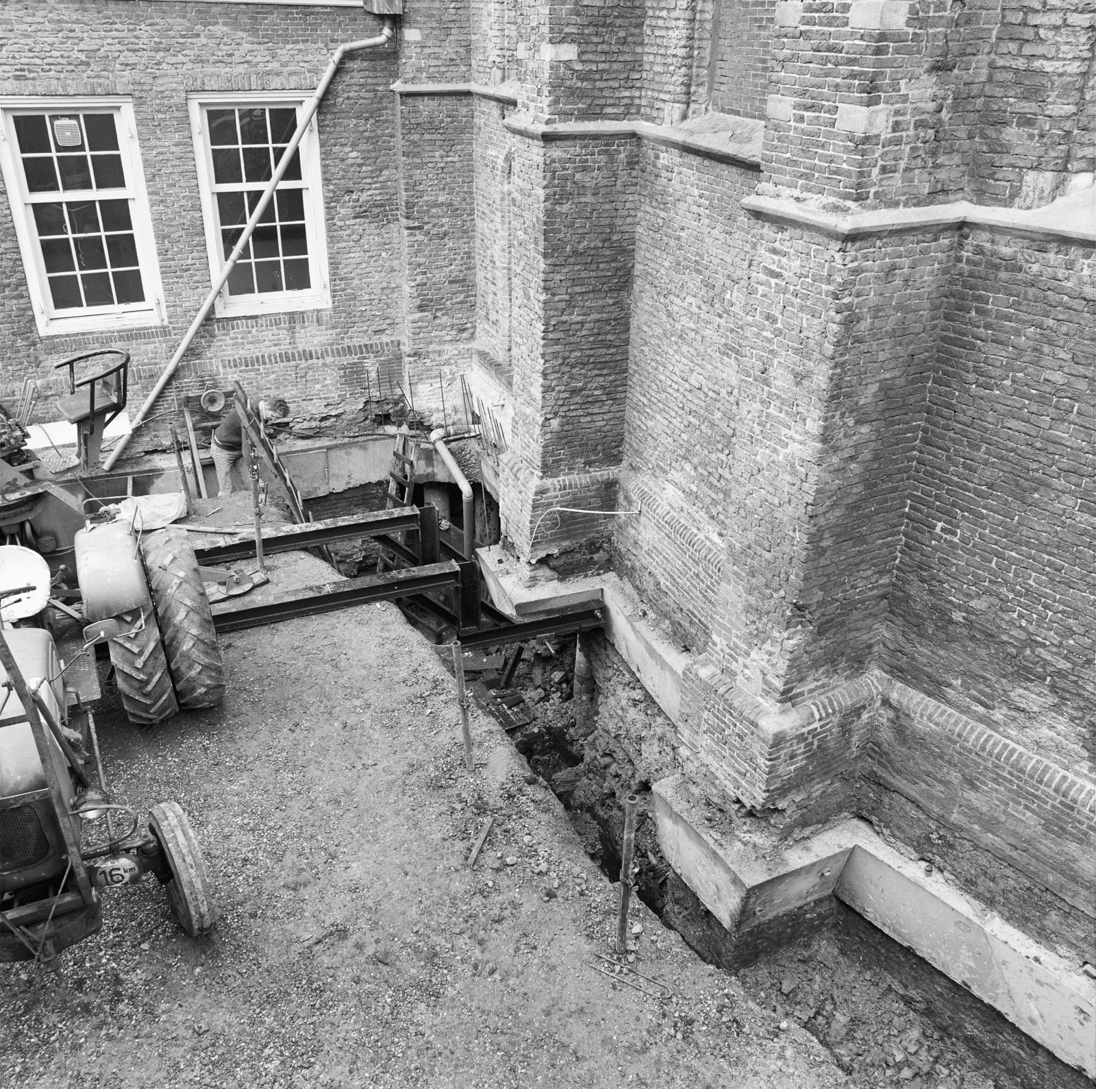 Nieuw aangebrachte fundering zuidelijke koormuur