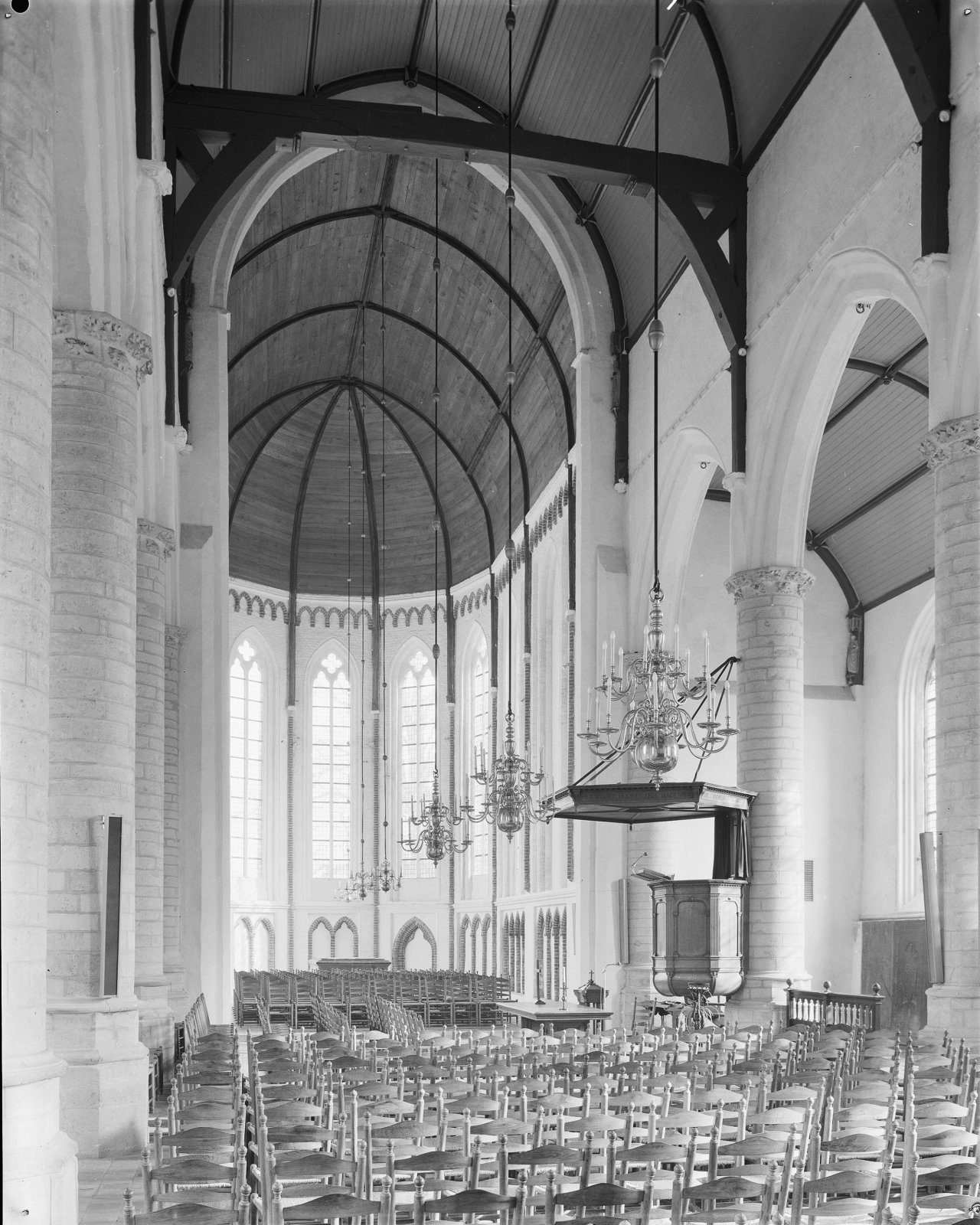 Interieur, overzicht vanaf middenschip naar het oosten
