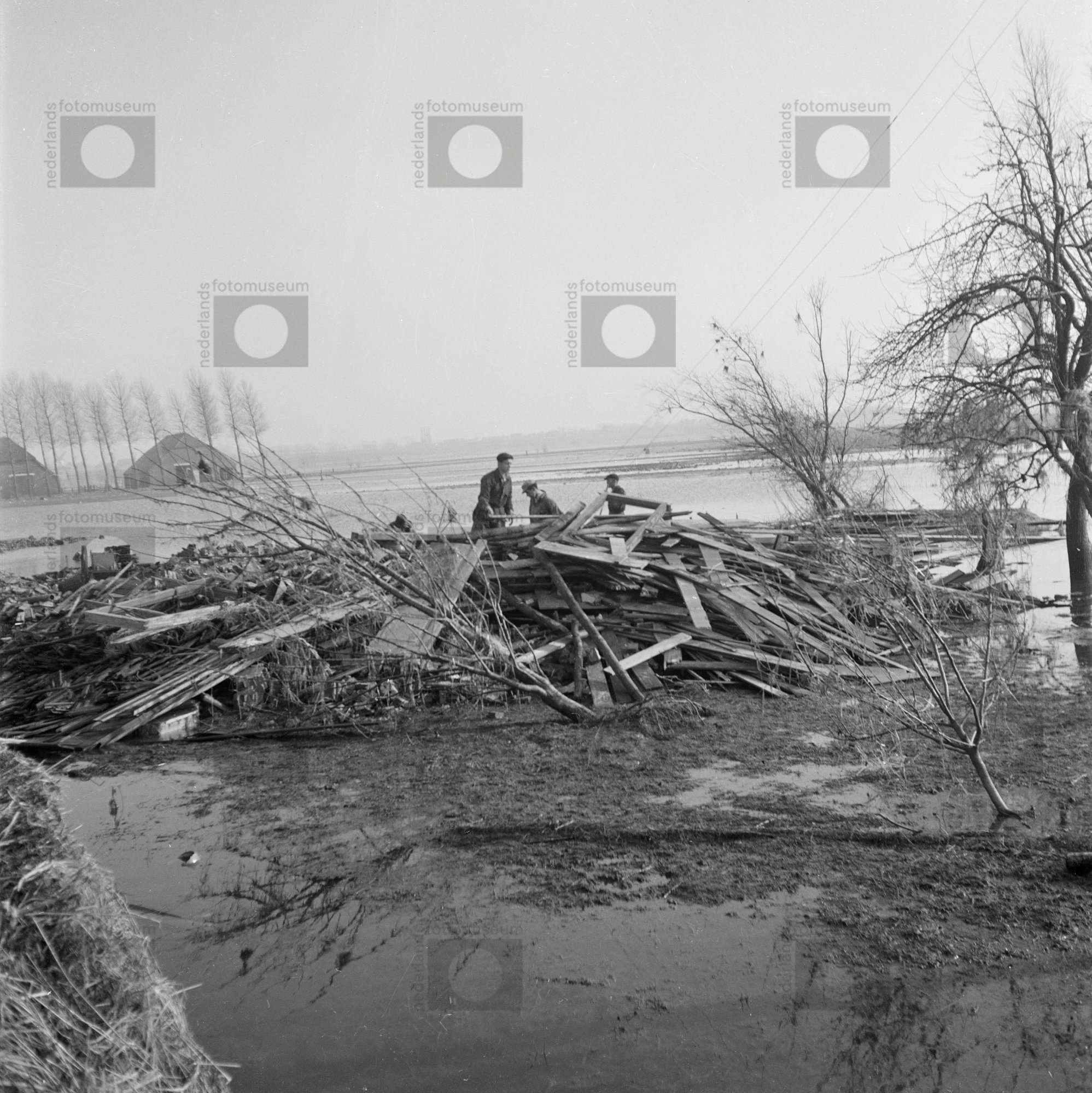 Puin in het landschap na de watersnoodramp, Moerdijk...