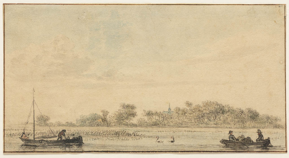 Rivierlandschap met bootjes