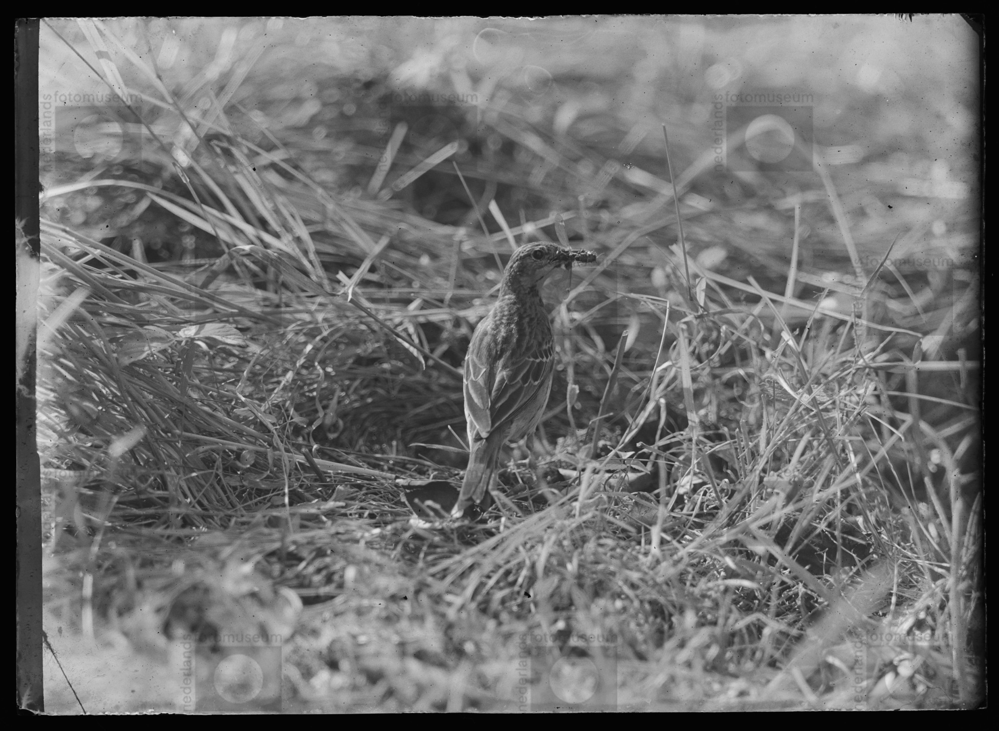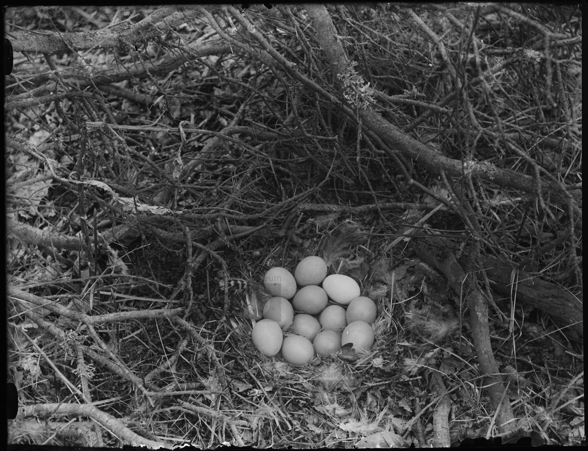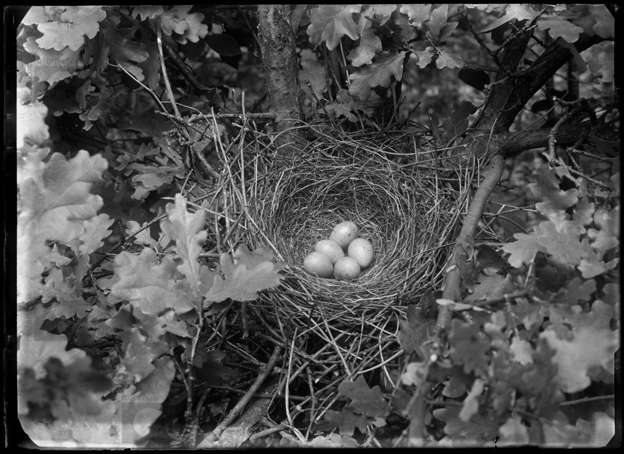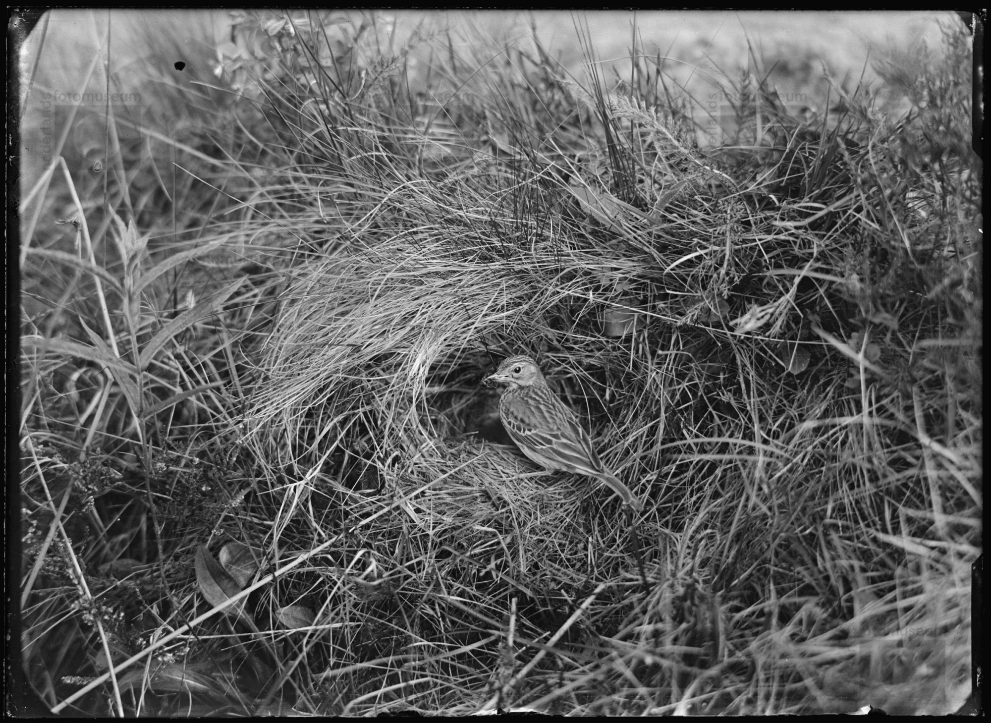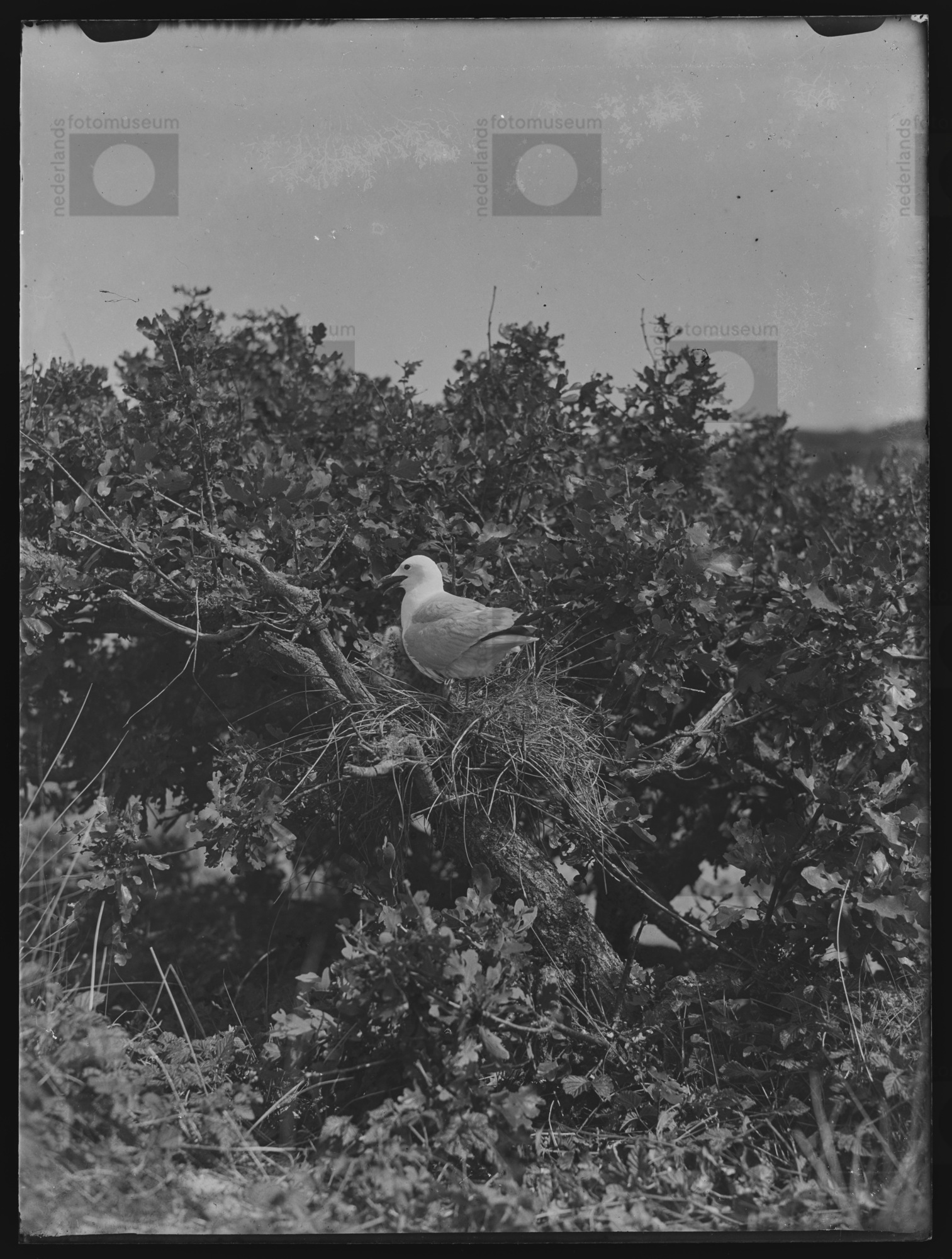 Stormmeeuw bij jongen in nest, Bergen (1934)