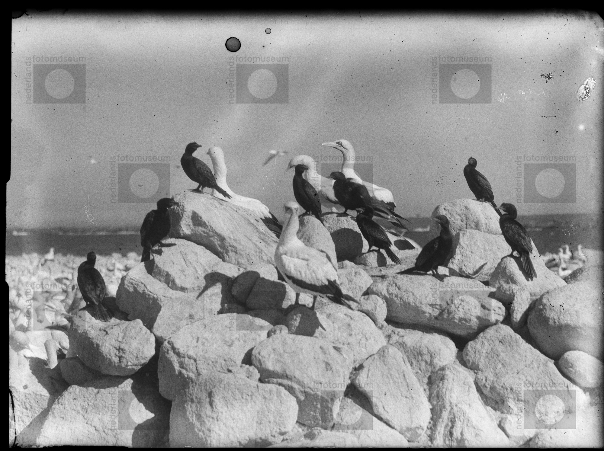 Kroonaalscholvers en Kaapse jan-van-genten, Malagas,...